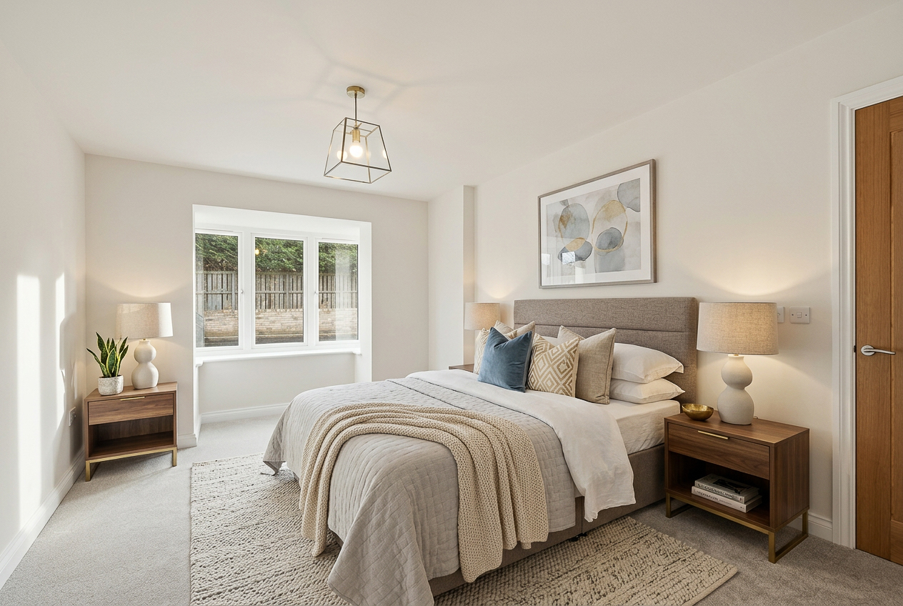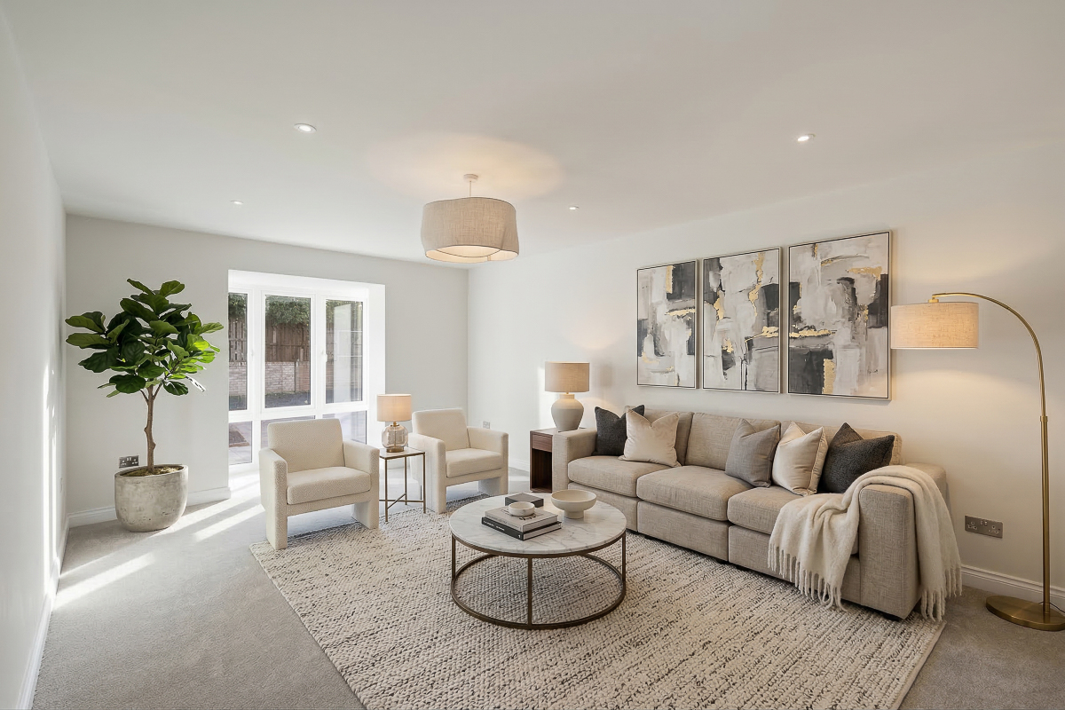 The interiors reflect a commitment to quality and design. Stylish Schüller kitchens provide a sleek and functional heart to each home, while the bathrooms are finished with premium Duravit sanitaryware complemented by elegant Porcelanosa tiling. Attention to detail is evident throughout, with high-quality fixtures and finishes creating a refined and comfortable living environment.