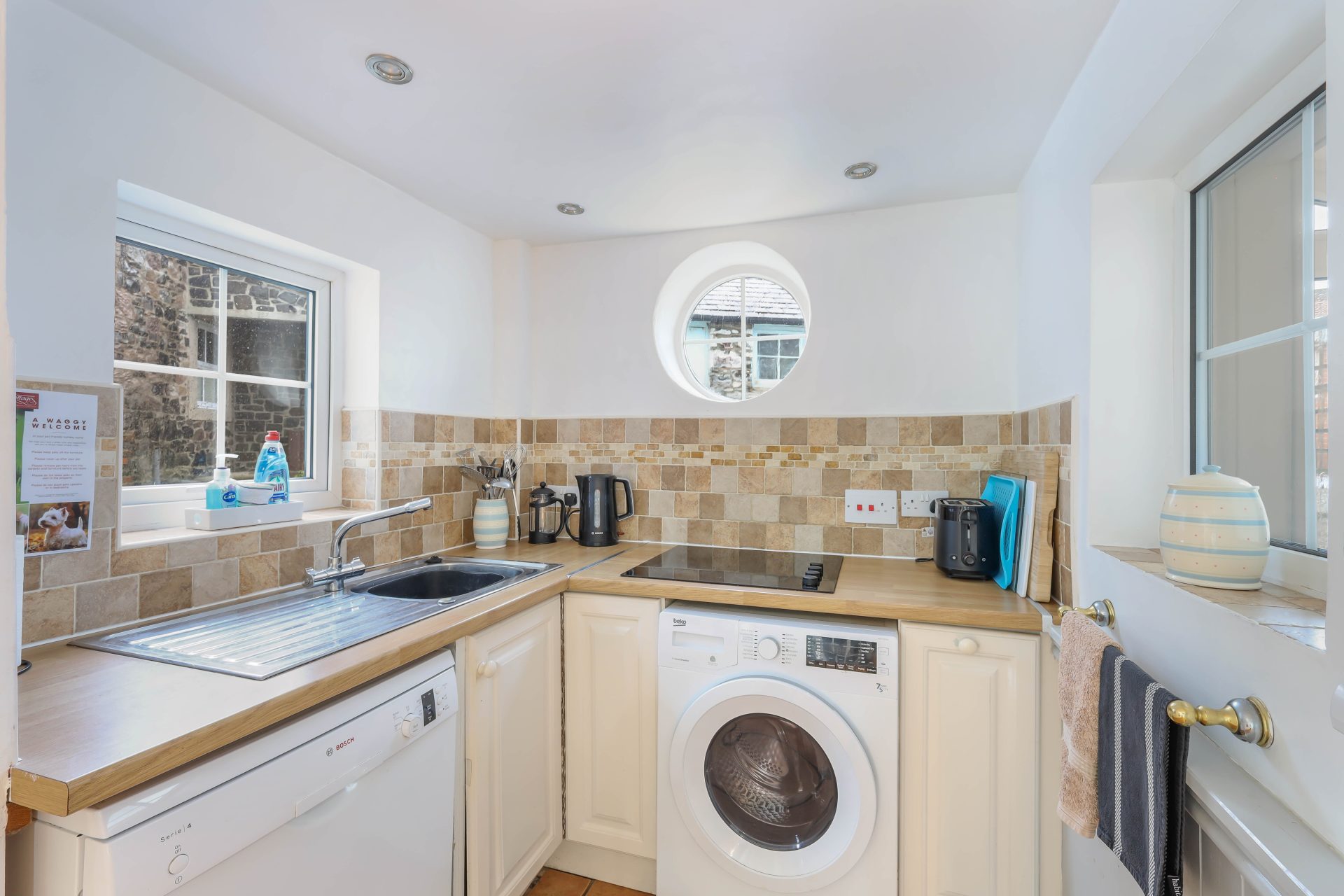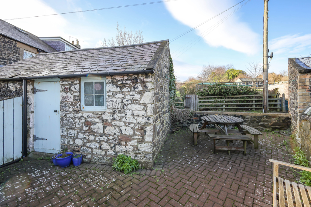 Externally – Impressive stone terraced & landscaped front garden over two levels overlooking the harbour, and ideal for outside dining and entertaining, with two neighbours having a right of access through the front gate to their gardens | Rear courtyard garden with a useful garden store/outhouse housing the gas bottles for the fire | Shared pathway to the rear of the house for the neighbouring terraced cottages | On street parking.