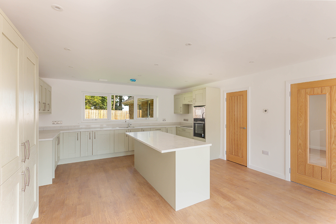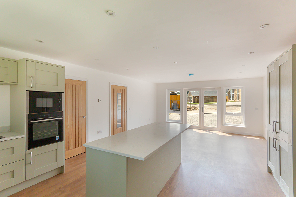 The open plan kitchen/diner fitted kitchen is very impressive with light green coloured units light coloured quartz worktops. The integrated appliances include a full height fridge and separate freezer, dishwasher, and a large useful larder. There is a separate lounge with floor to ceiling windows that offer an abundance of natural light. The separate family bathroom provides a bath, shower wc and is fully tiled.