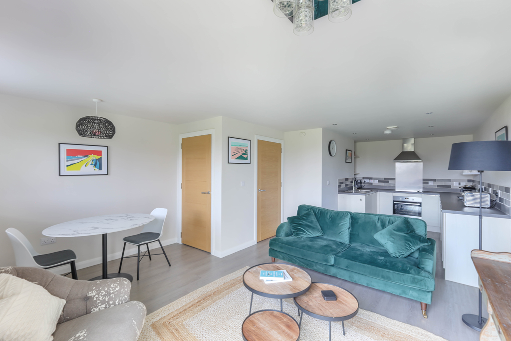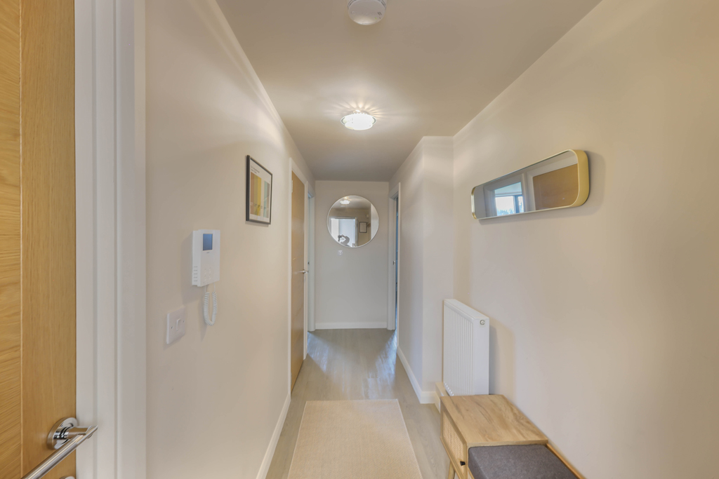 Accommodation – Secure intercom system provides access to the building and communal galleried hallway with stair and lift access to all floors | A private entrance door leads to the entrance hallway with a useful store cupboard | Superb and spacious open plan living/dining room which is open to the fitted kitchen, with French doors opening to a glass balustrade Juliet balcony | A well appointed kitchen fitted with a range of cream cabinets, with integrated electric hob with extractor, oven, dishwasher, washing machine and fridge/freezer | Large double bedroom with ample space for freestanding bedroom furniture | Bathroom comprising; bath with rain shower over, wash hand basin and WC, chrome ladder radiator and neutral tiling.