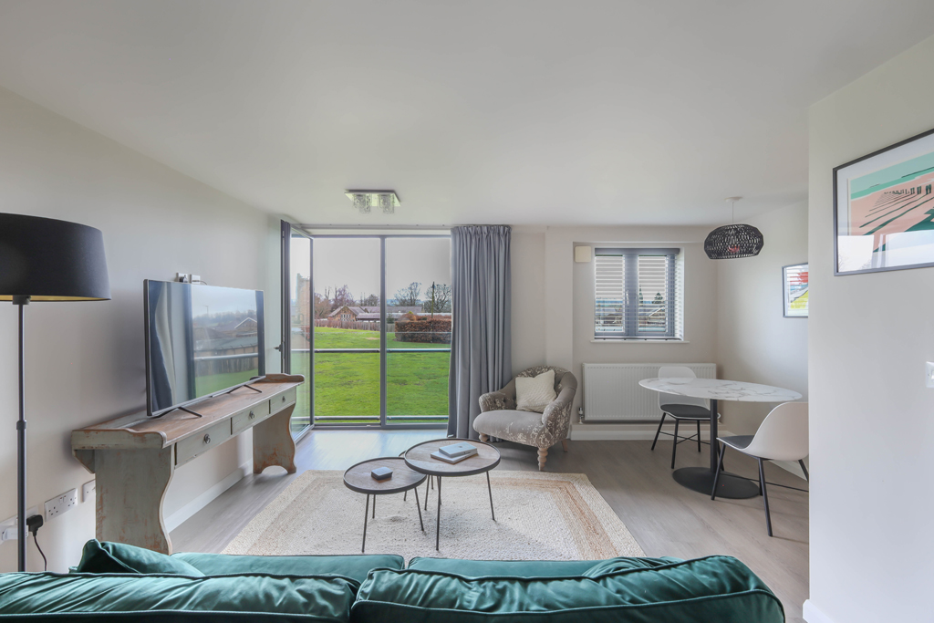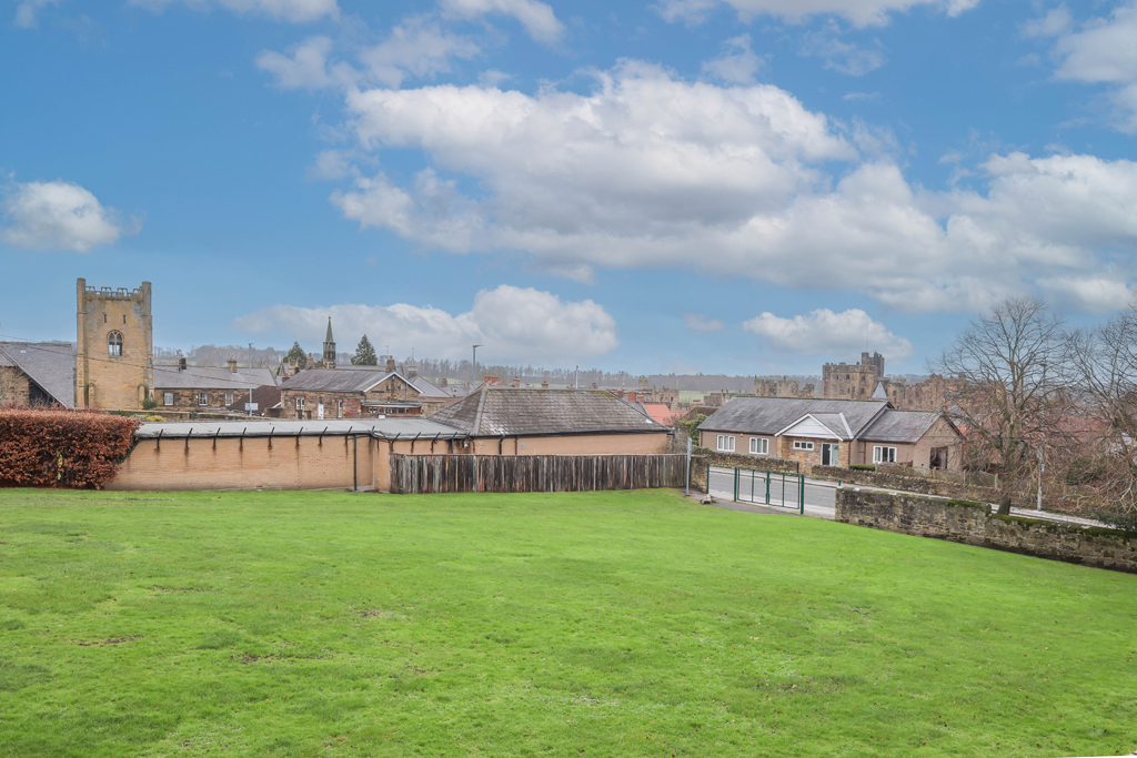 access to a Juliet balcony with lovely views towards the Bailiffgate Tower and Alnwick Castle, allocated garage parking for one car and lift/stair access – currently a successful holiday let with Coquet Cottages – No Upward Chain