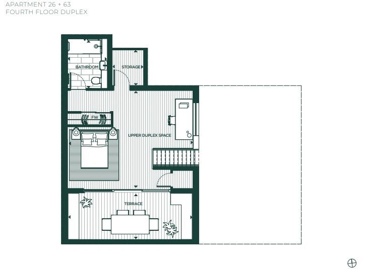Living/Dining/Kitchen | Bedroom | Bathroom | Stairs to Upper Duplex Space/Bedroom Two | Bathroom | Storage Cupboard | Winter Garden Terrace | Allocated Parking Space