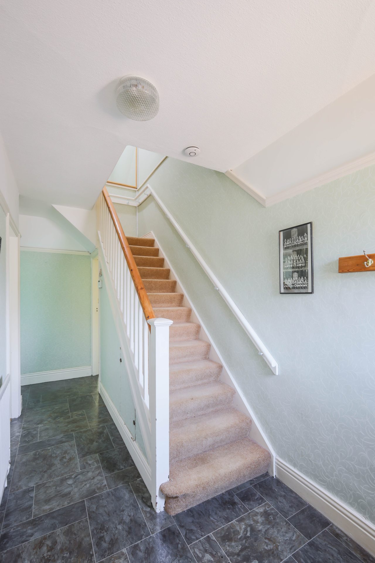 The staircase then leads up to the first floor and onto three bedrooms | The principal bedroom is positioned to the rear and enjoys a comfortable double room with fitted storage | Bedroom two is a further generous double room | Bedroom three, offering a single/study | Family bathroom with well presented three piece suite.