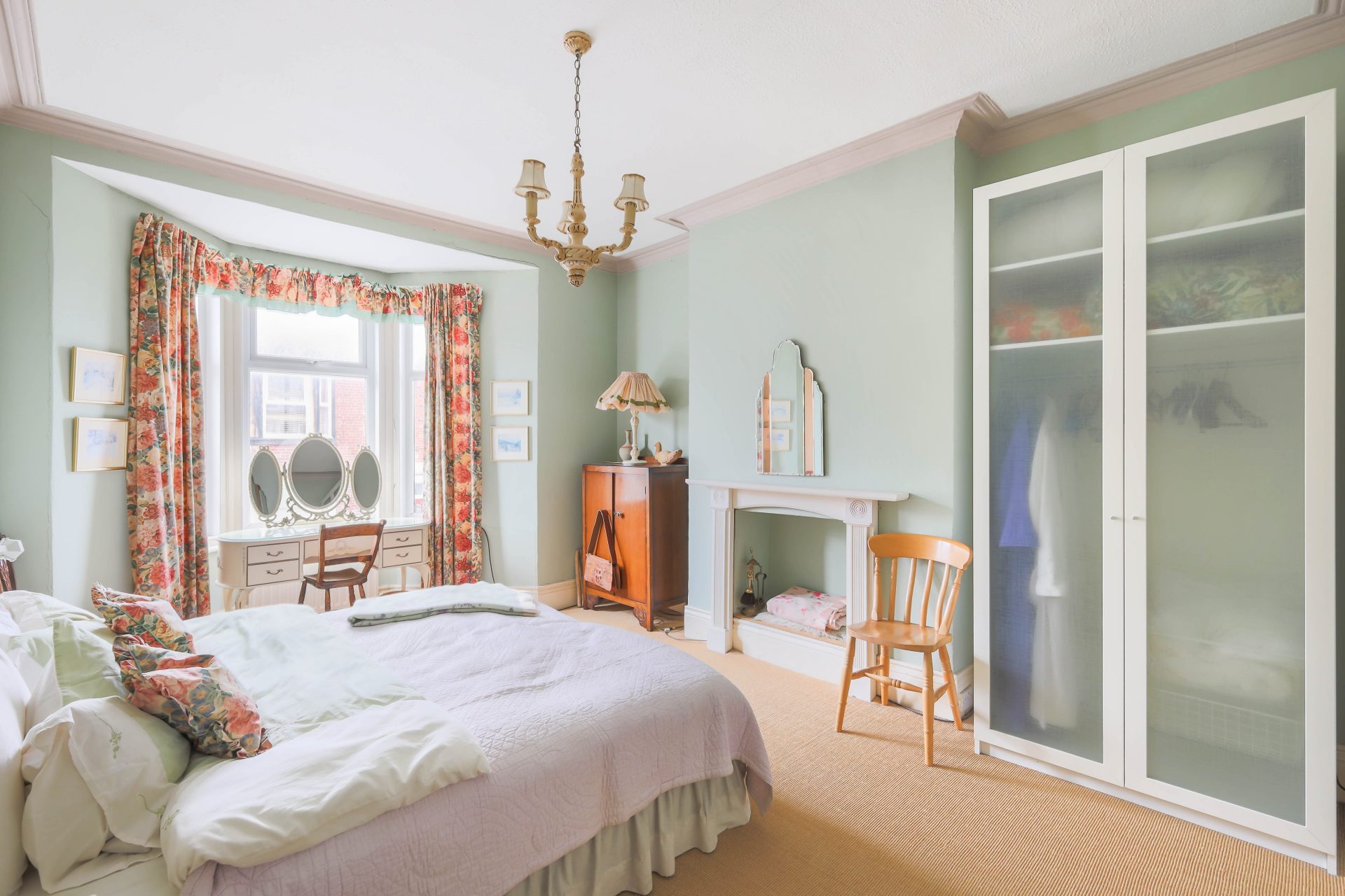 Upon entering the property, stairs lead to the first floor landing where two well proportioned bedrooms sit to the front. The principal bedroom enjoys a charming bay window fitted with shutters, a feature fire surround and ample natural light. The second bedroom is also a comfortable double, enhanced by built in sliding wardrobes and a pleasant west facing aspect.