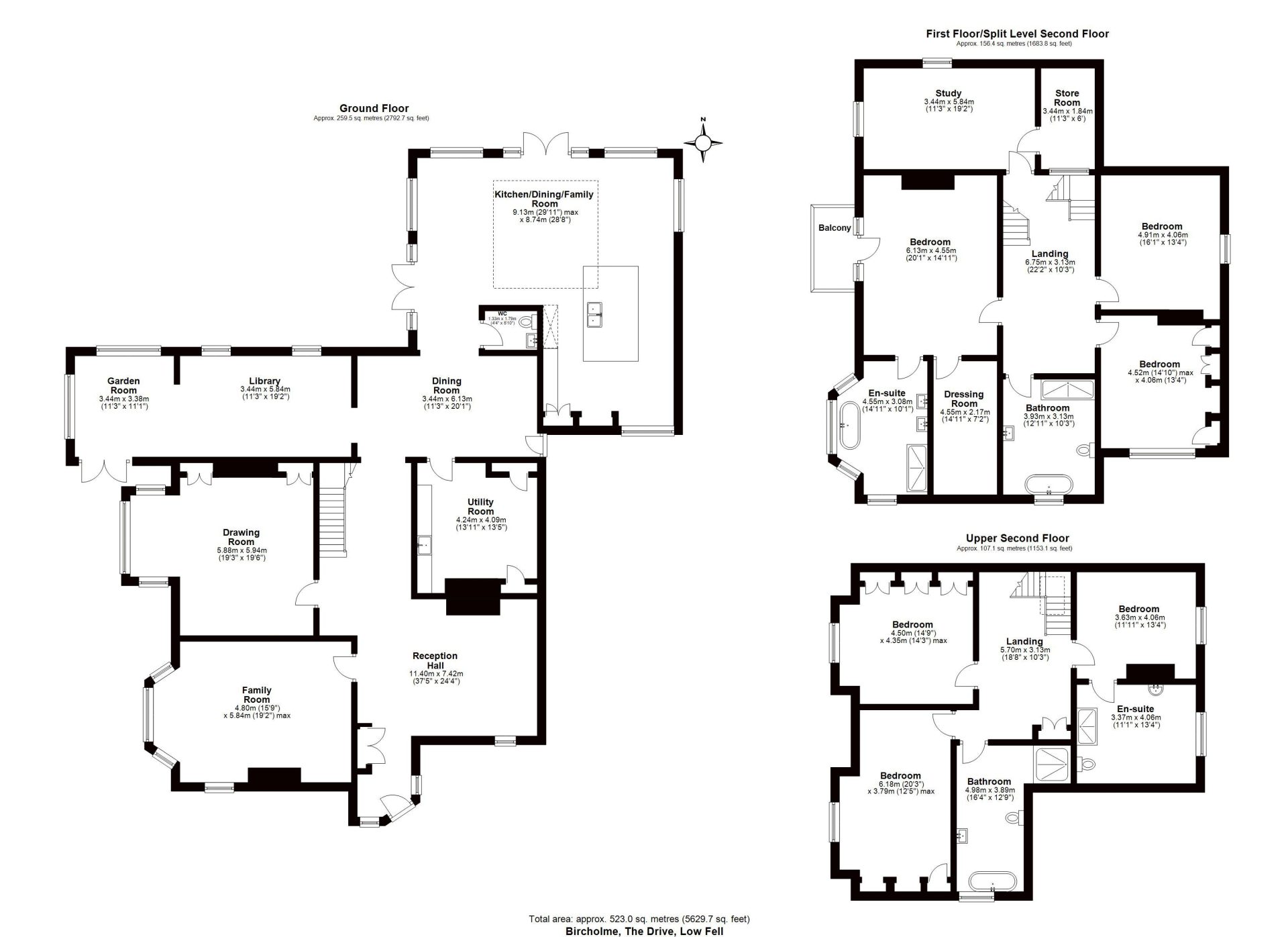 Second Floor: Split level landing leading to a professionally fitted study | Three further double bedrooms, one with en suite shower room/WC| Second family bathroom/WC with free standing bath and walk in shower