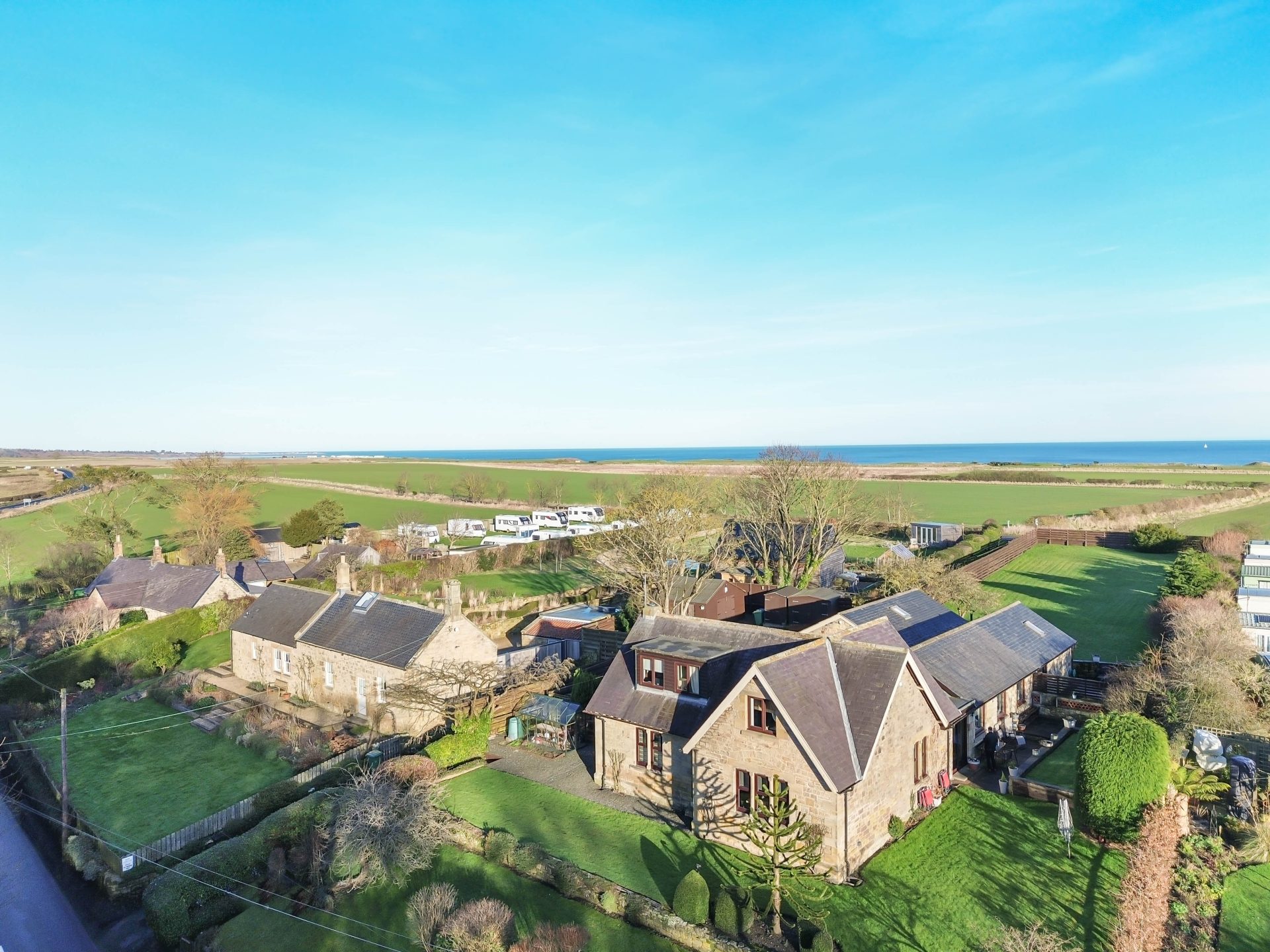 Impressive and versatile six bedroom, detached cottage occupying an approx. 0.56 acre garden site close to the beach and Warkworth Village – the superb family home is only minutes from the village and beach, with views from the first floor over the large private gardens to the sea and coast, useful timber stores/sheds and a courtyard parking area for several cars. NO UPWARD CHAIN
