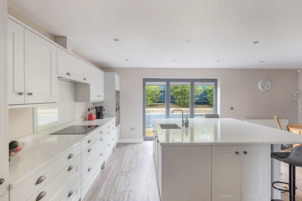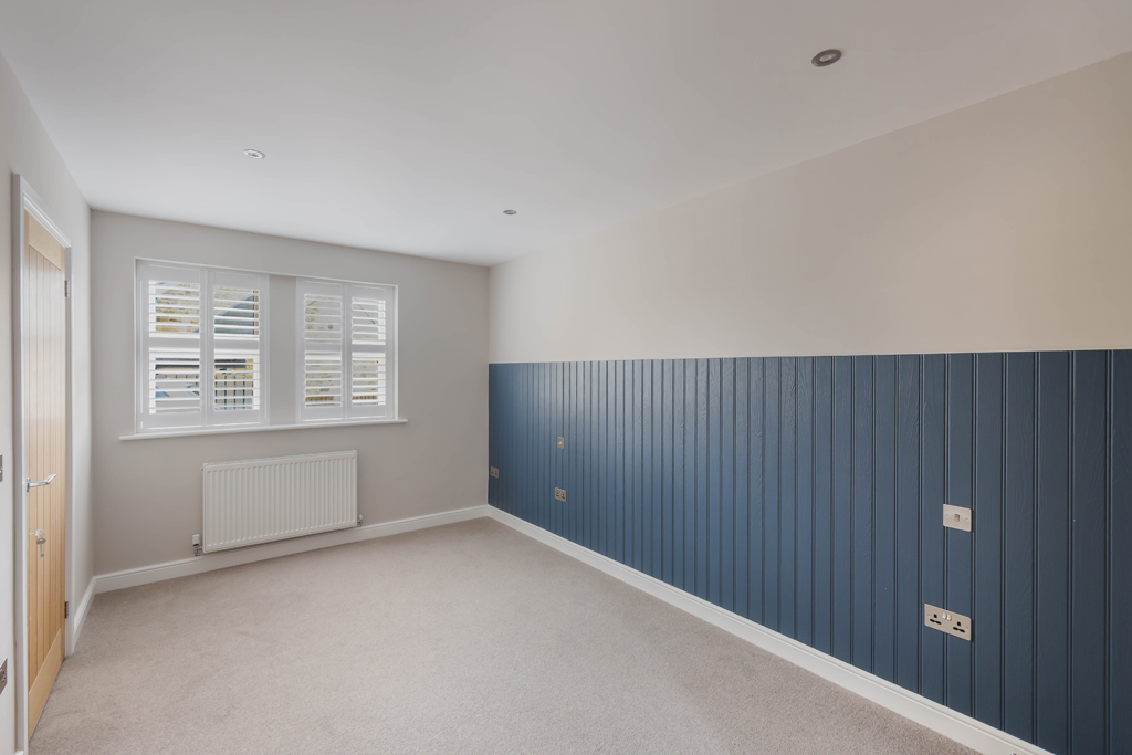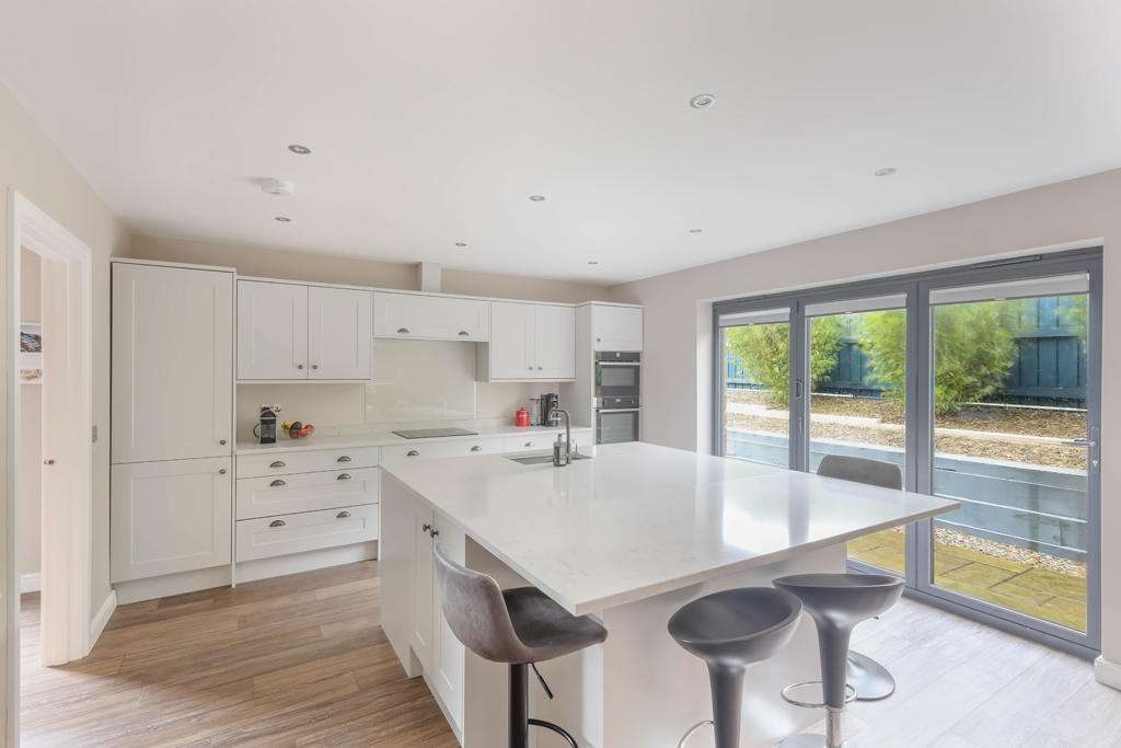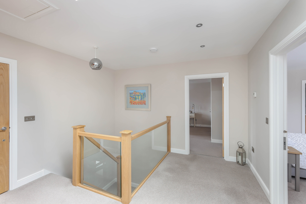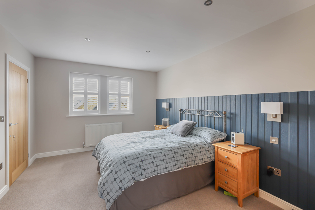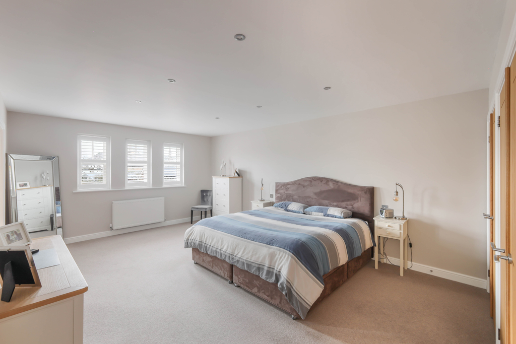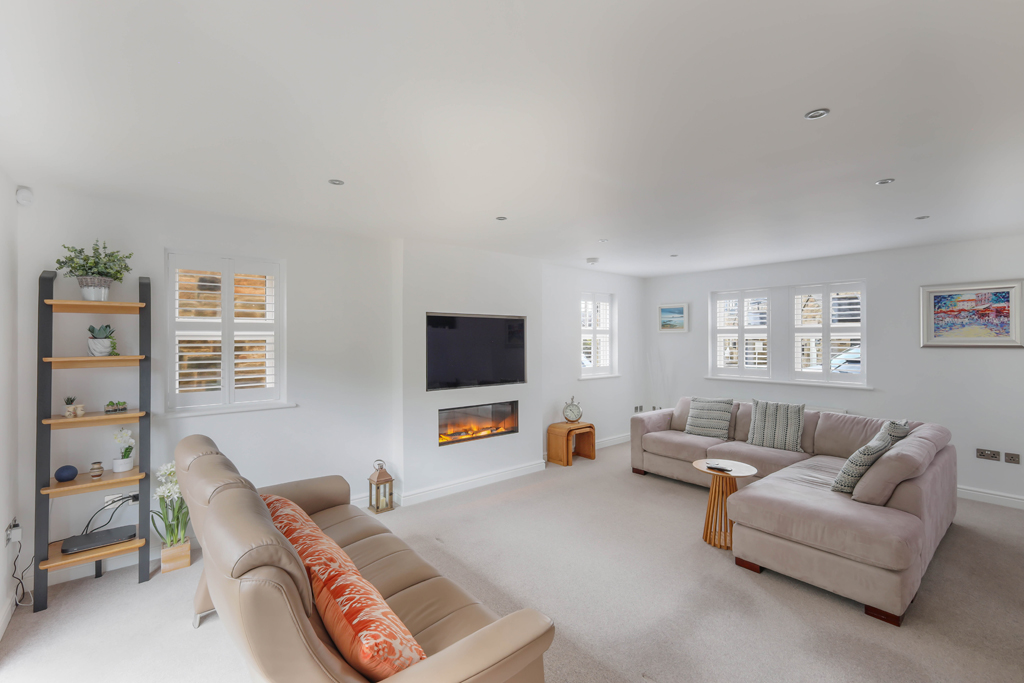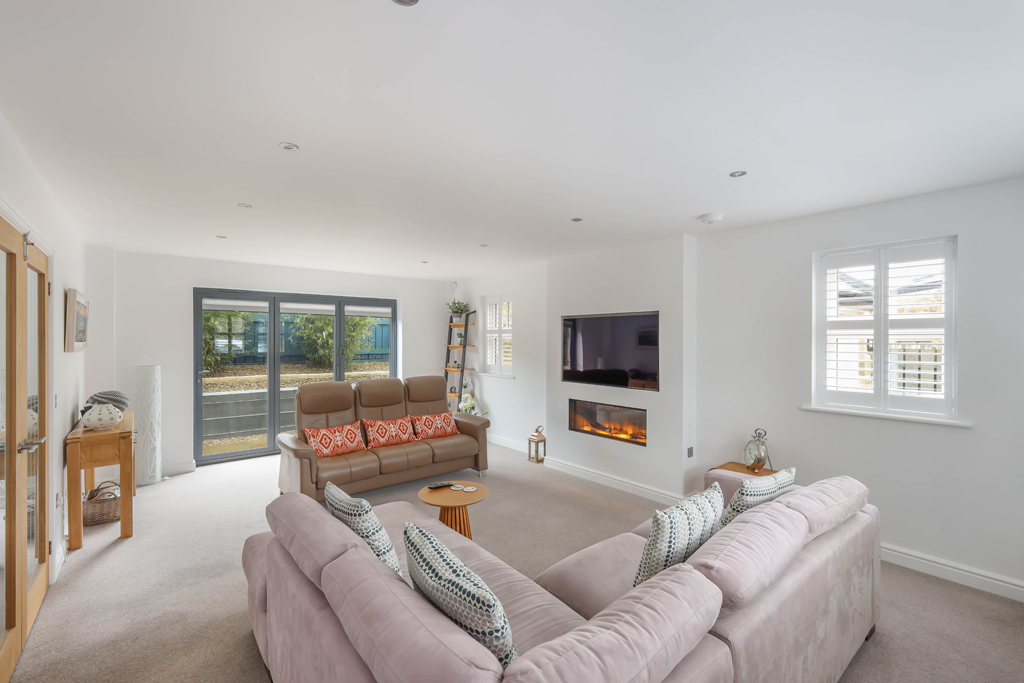 The house has been finished to an exceptional standard throughout, with generous and well proportioned accommodation over two floors – circa 211 sq metres. Design features include; oak internal doors and contemporary oak staircase and balustrade, quality Karndean flooring and carpets, stunning fitted kitchen with large central island and granite worktops, bi-fold doors from the living room and kitchen, and impressive ensuite shower and bathrooms. The house has been further improved by the current owner with the addition of plantation shutters, and landscaping of the gardens.