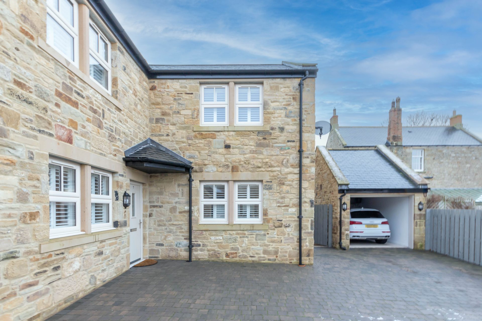 A stylish and immaculately presented four bedroom/four ensuite detached house, with attractive landscaped and easily maintained gardens, block paved driveway and detached single garage. The deceptively spacious stone built home was newly constructed in 2020 , sits to the head of the cul de sac in this exclusive development – Brindles Manse is a small development of stone built homes, located towards the edge of North Sunderland just inland from the beautiful Northumbrian coastline, Bamburgh and Seahouses.