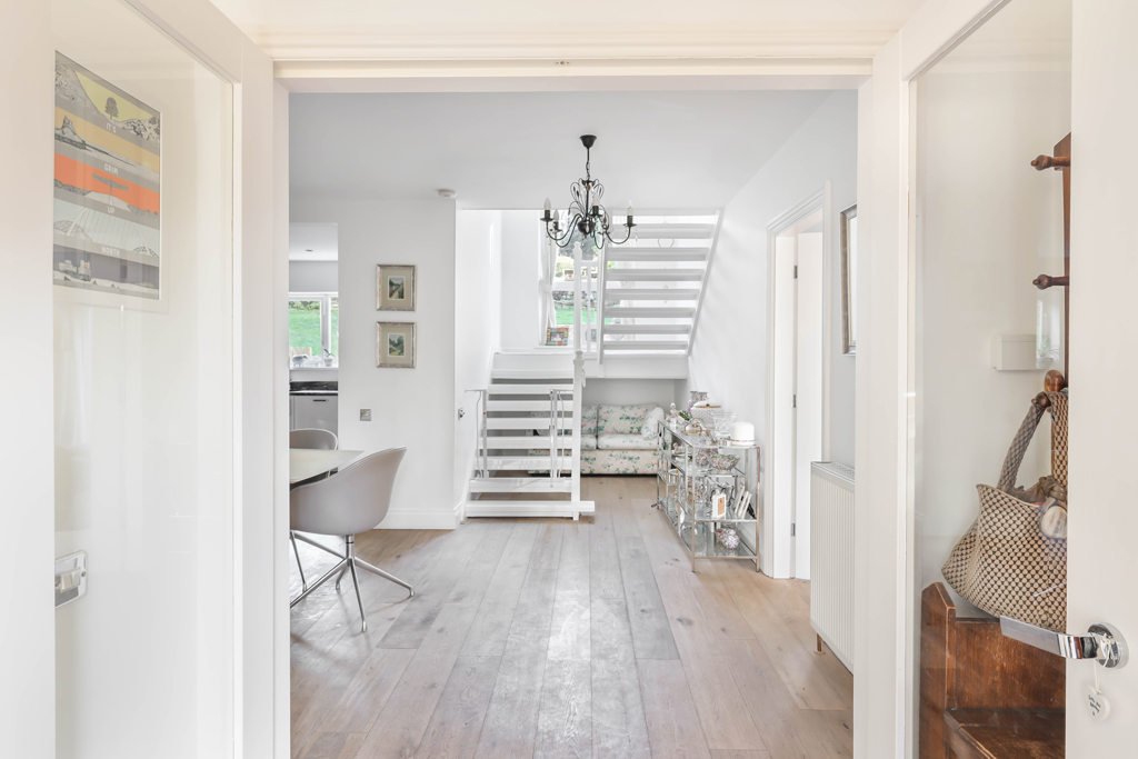 Access is gained via a side gate leading into a charming south west facing courtyard, which in turn provides entry to the front door. Upon entering the property, you are welcomed into a spacious entrance hallway, thoughtfully designed with fitted wardrobes offering excellent storage for coats and footwear.