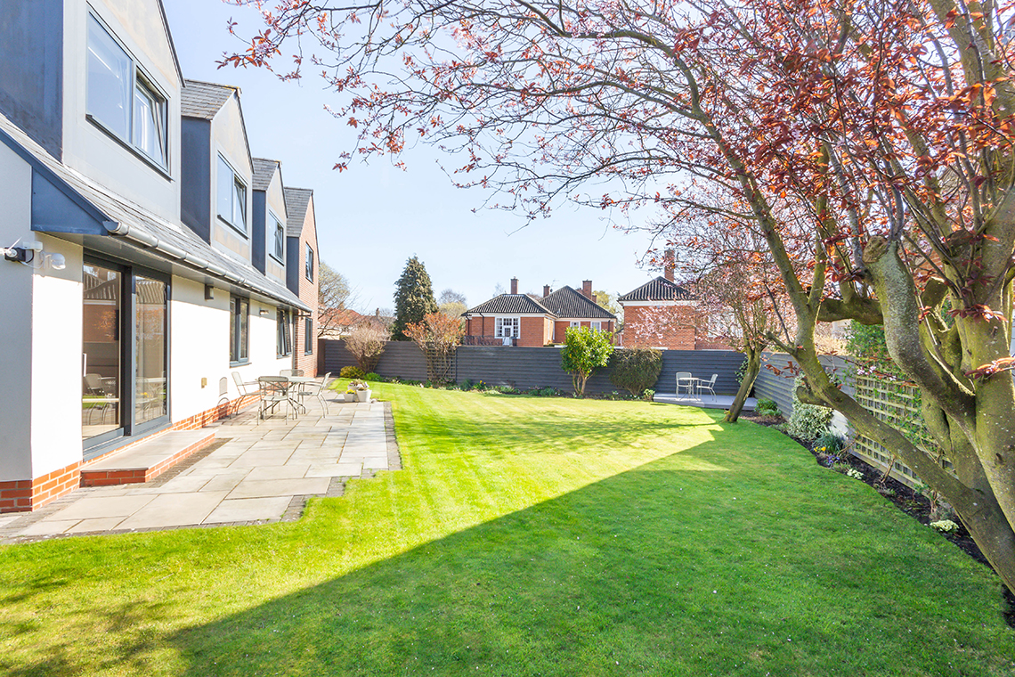 The gardens are presented immaculately with lovely lawned areas and patios, with good privacy and seclusion from the high hedged boundaries.