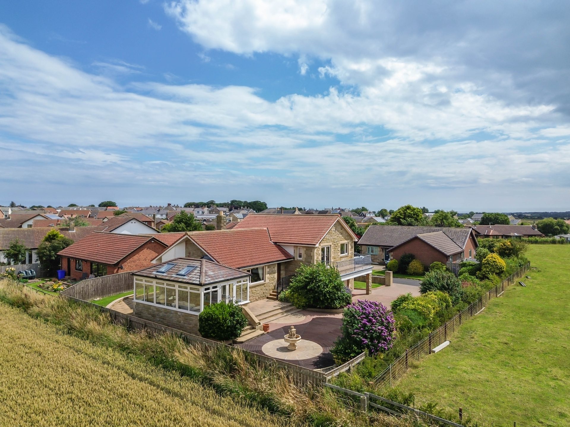 An impressive, five bedroom stone built detached house, on the western edge of North Sunderland, with fantastic open aspect views over the surrounding fields and countryside towards the Cheviots – the excellent split level, family home was built in 1995, as a bespoke design for the current owners, located approx. 1 mile inland from Seahouses village, to the head of a quiet cul de sac with a generous driveway and large integral double garage. NO UPWARD CHAIN