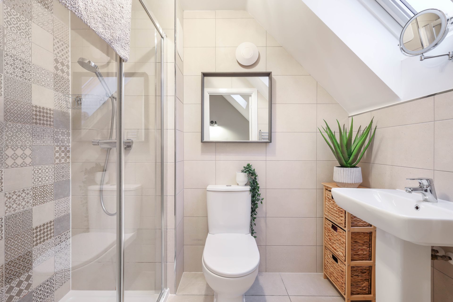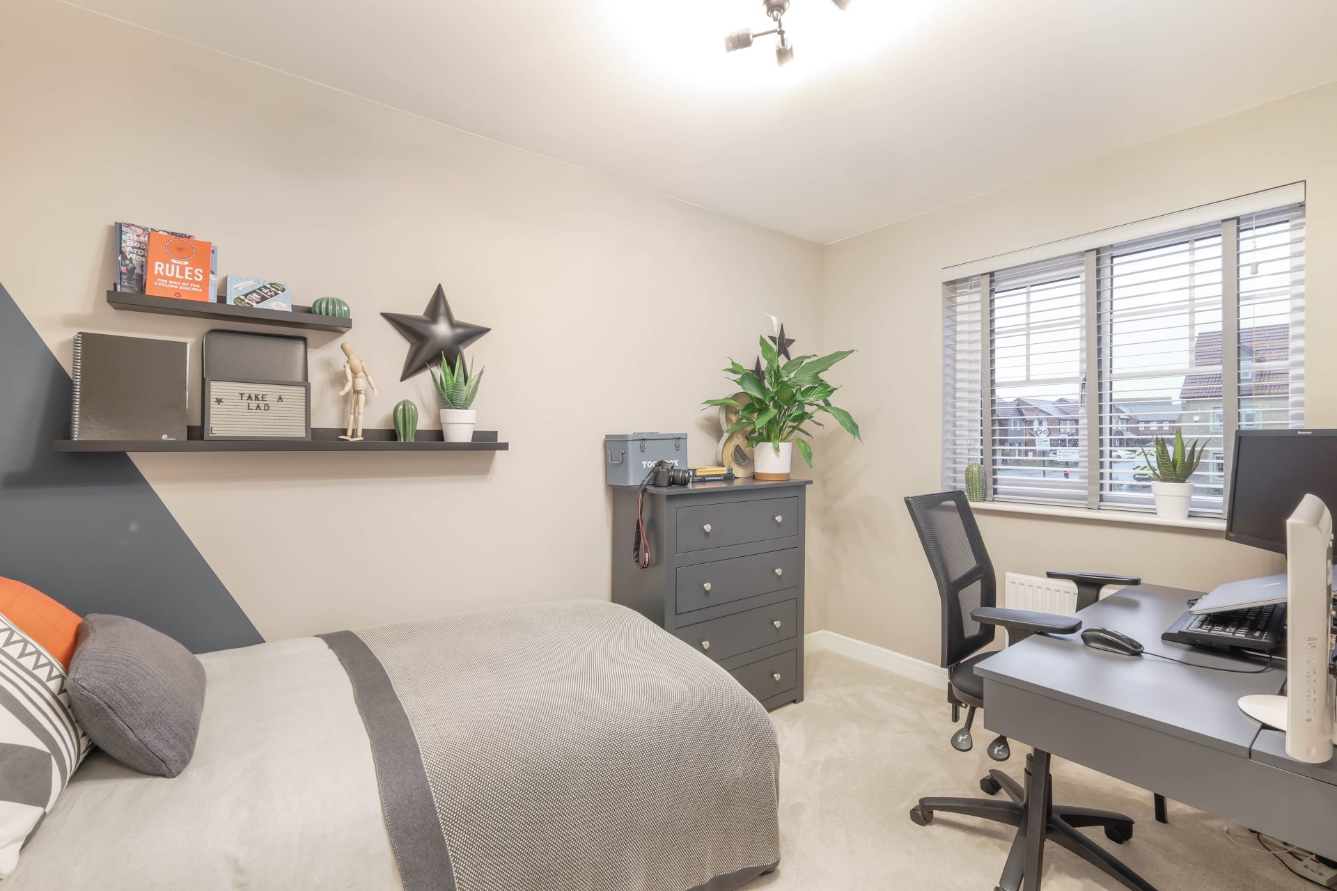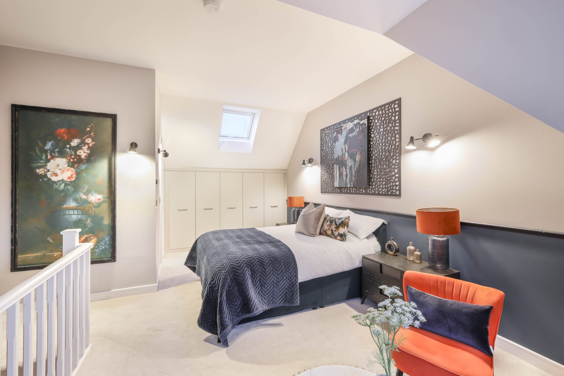 The stairs then lead up to the first floor and onto two bedrooms | Bedroom two is a comfortable double with fitted storage | Bedroom three is a ¾ room/study | Family bathroom with three piece suite | The stairs then continue up to the second floor and onto a fantastic principal suite with vaulted ceilings, fitted wardrobes and an ensuite shower room WC.