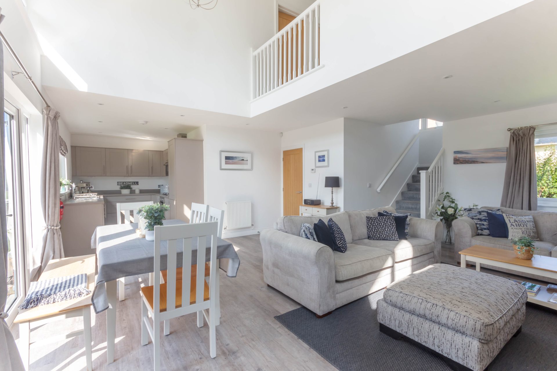 First floor – Galleried first floor landing overlooking the open plan living/dining room | Lovely Master bedroom with French doors opening to a Juliet balcony | Ensuite shower room/wc | Second double bedroom | Third twin bedroom | Family bathroom/wc with bath, separate shower, wash hand basin and wc.