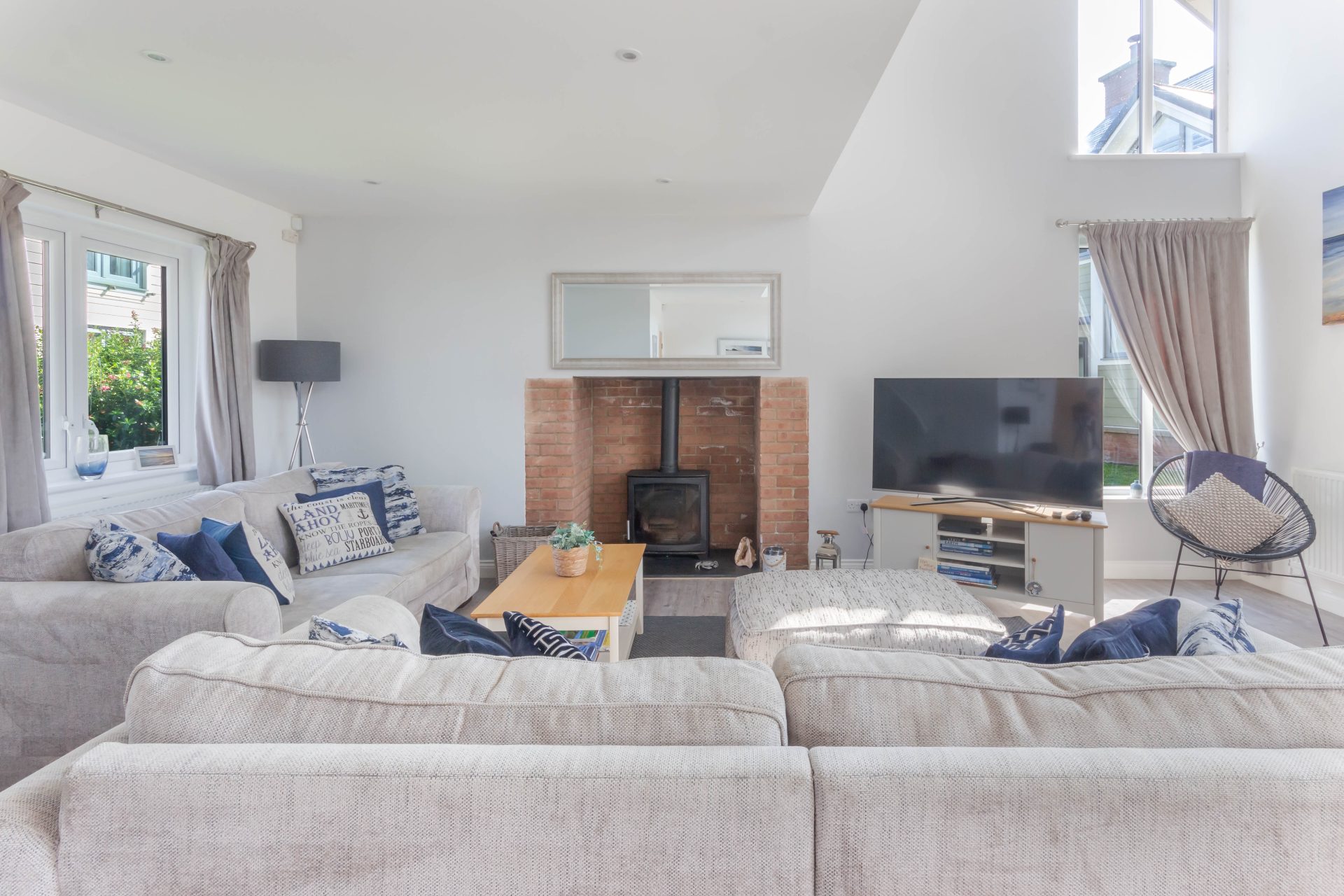 Externally – The property has open lawned gardens, with a lovely south westerly facing decked terrace, ideal for outside entertaining and barbecues. There is an external store cupboard ideal for bikes and paddleboards/kayaks and a driveway with parking for two cars.