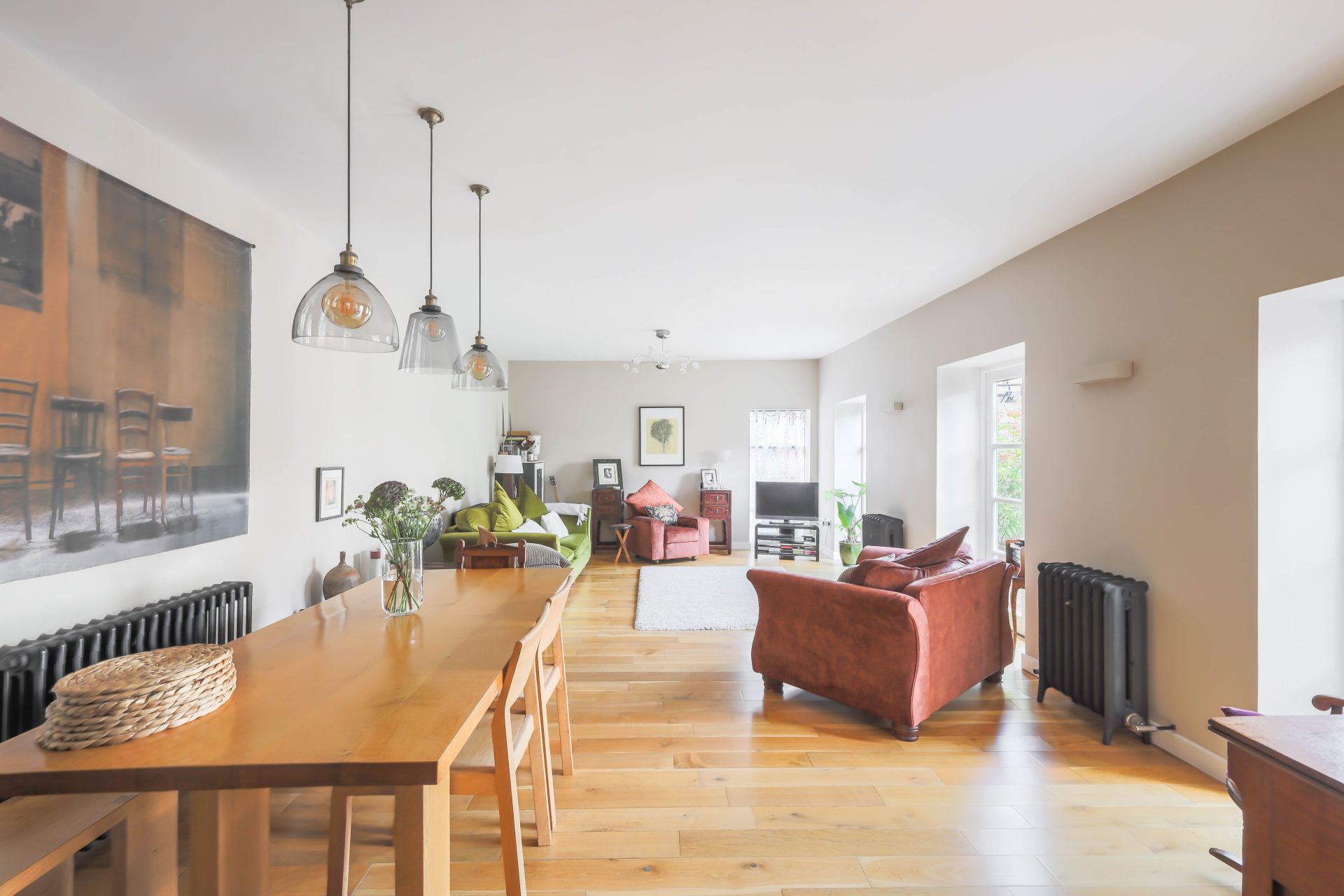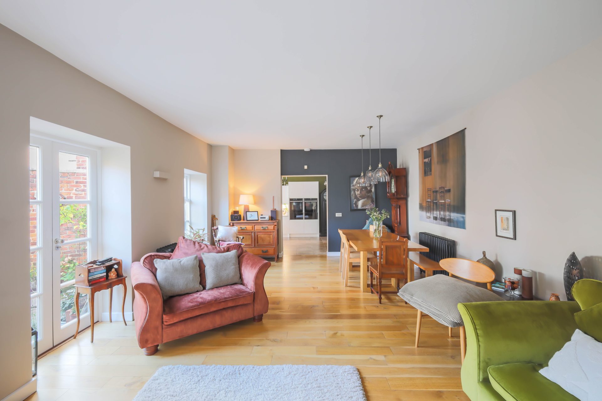 The impressive family home has generous accommodation set over two floors, with a spiral staircase leading from the open plan kitchen/breakfast room to the three first floor double bedrooms – the contemporary kitchen and bathrooms have been updated in the last 5 years, providing ready to walk in accommodation. The construction of the lovely Garden room/studio within the courtyard, is a great recent addition offering good, flexible space as either a studio, home office, music room or additional ancillary bedroom accommodation to the main house.