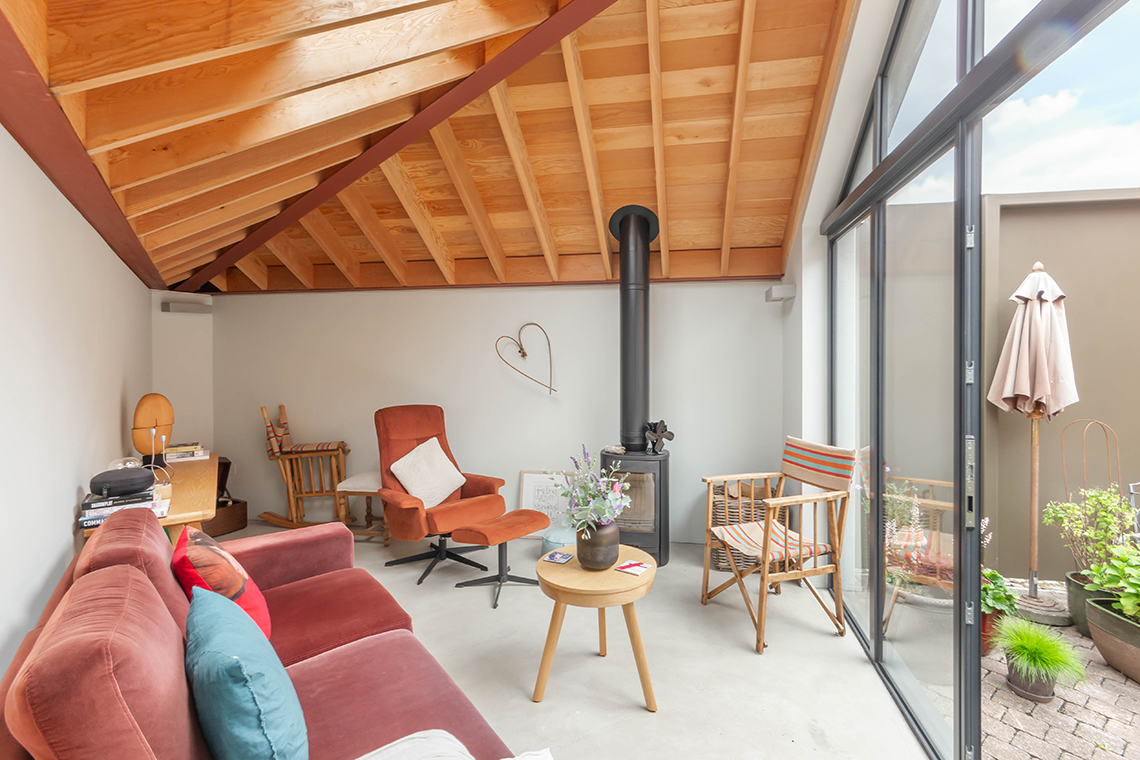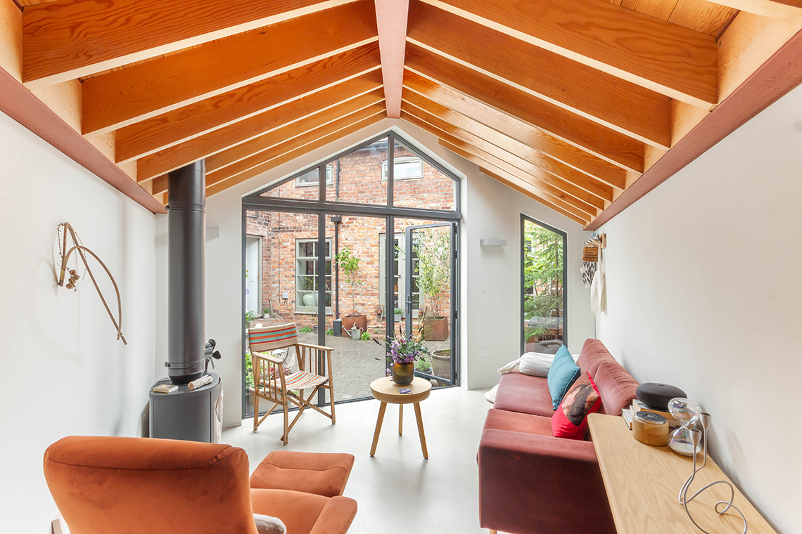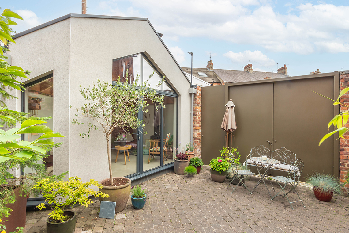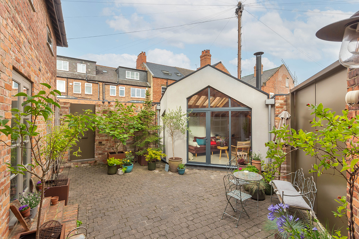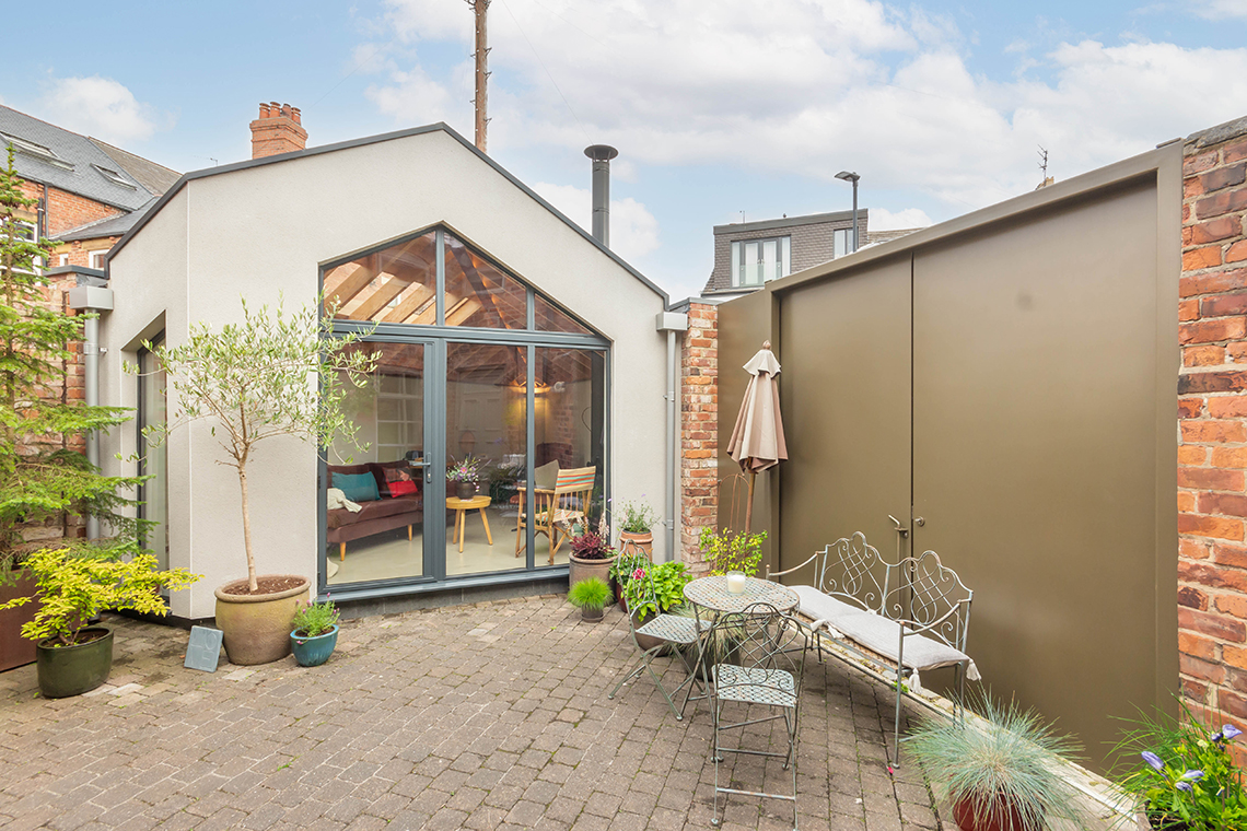 Externally – The attractive courtyard garden has been thoughtfully designed and landscaped, with an impressive architect designed snug /garden room, constructed in 2020, with a cast iron woodburning stove, exposed beams and would be ideal as a separate home office, guest bedroom annex or music room | New metal gates open to both the side and rear lanes, with a newly constructed brick wall to the boundary.