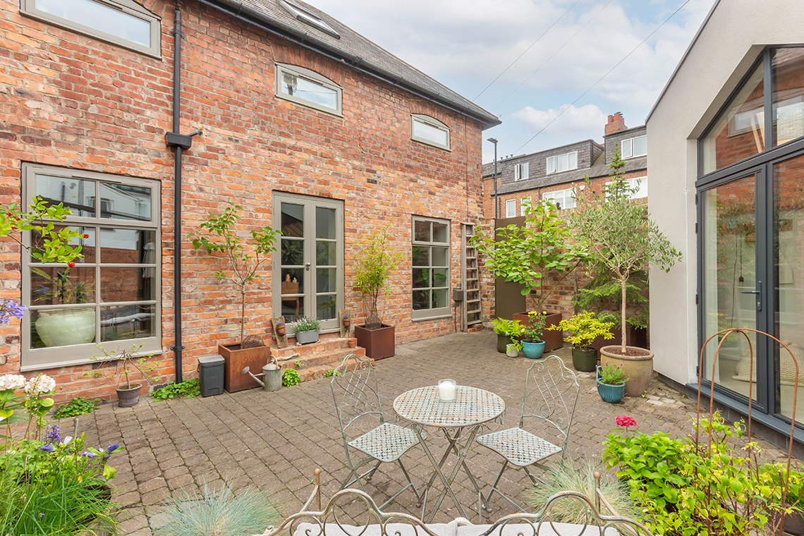 Farrier House is a stylish and unique, three bedroom ‘industrial style’ detached mews house, converted by the current owners around 17 years ago, with the more recent addition of a superb architect designed Garden room/Studio with the courtyard (2024) – secure bespoke metal gates to the cobbled courtyard garden, with scope for off street parking.
