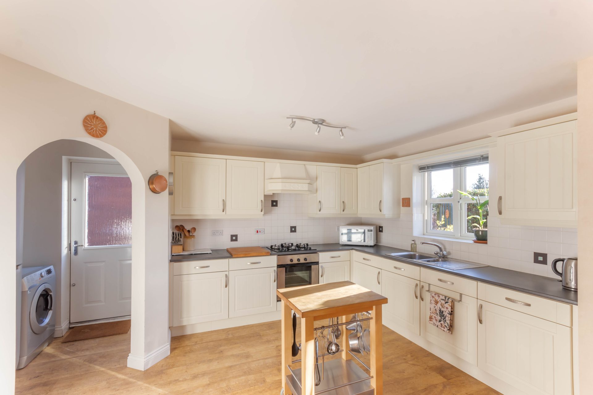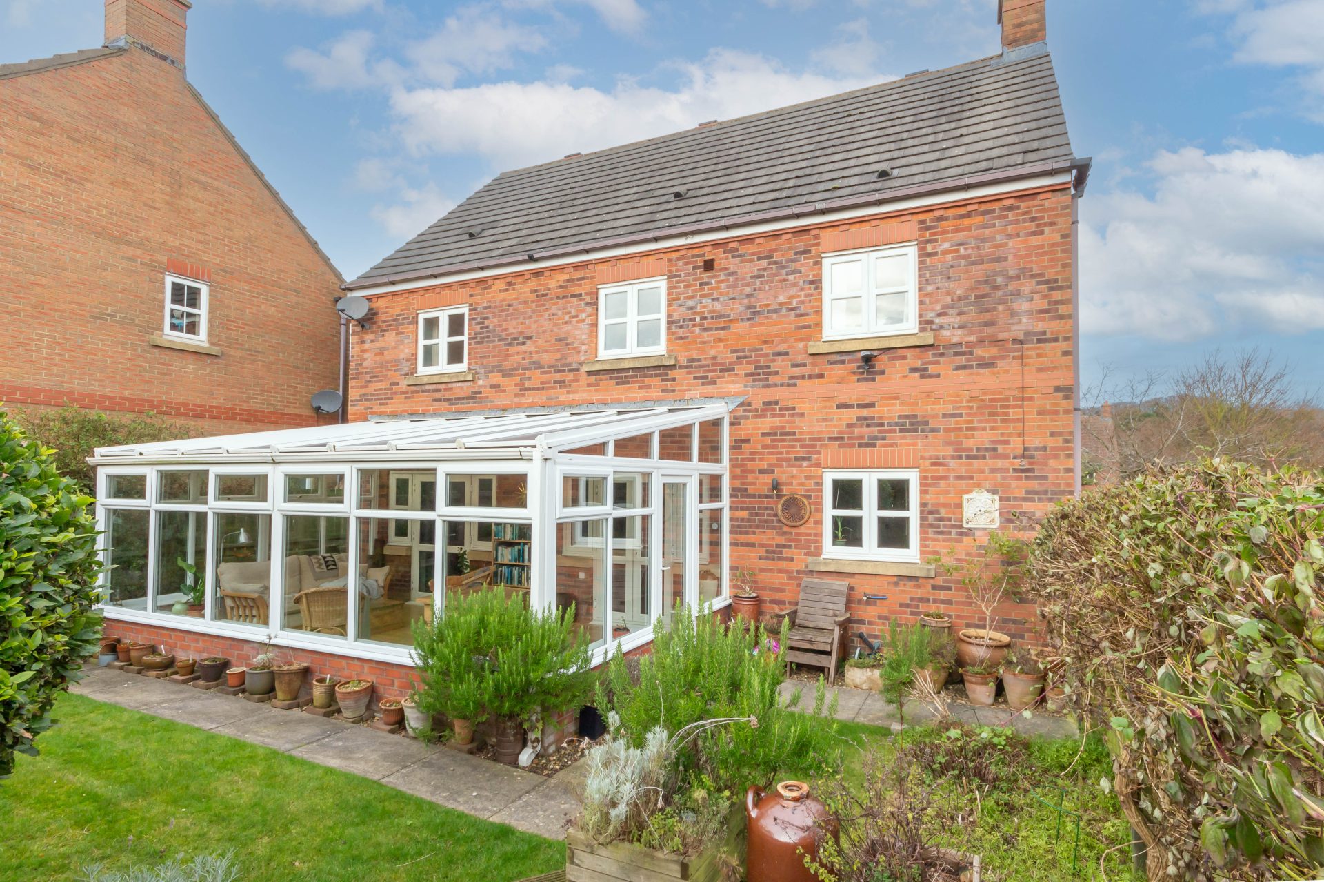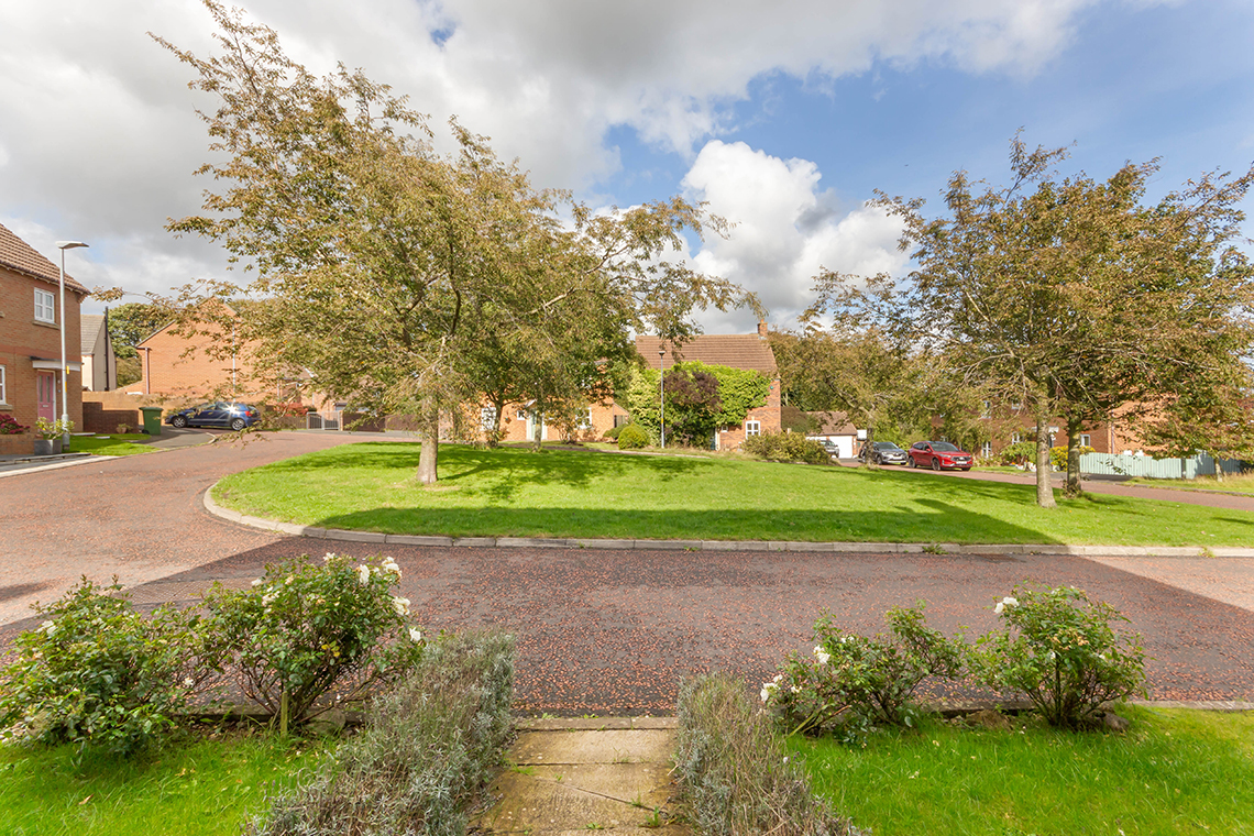 A well presented, four bedroom detached house, in a lovely quiet cul de sac overlooking a central green to the front and opens fields to the rear – the house has an impressive & generous Conservatory extension to the rear, attractive landscaped gardens and a shared access (with one neighbour) to a detached double garage and driveway parking.