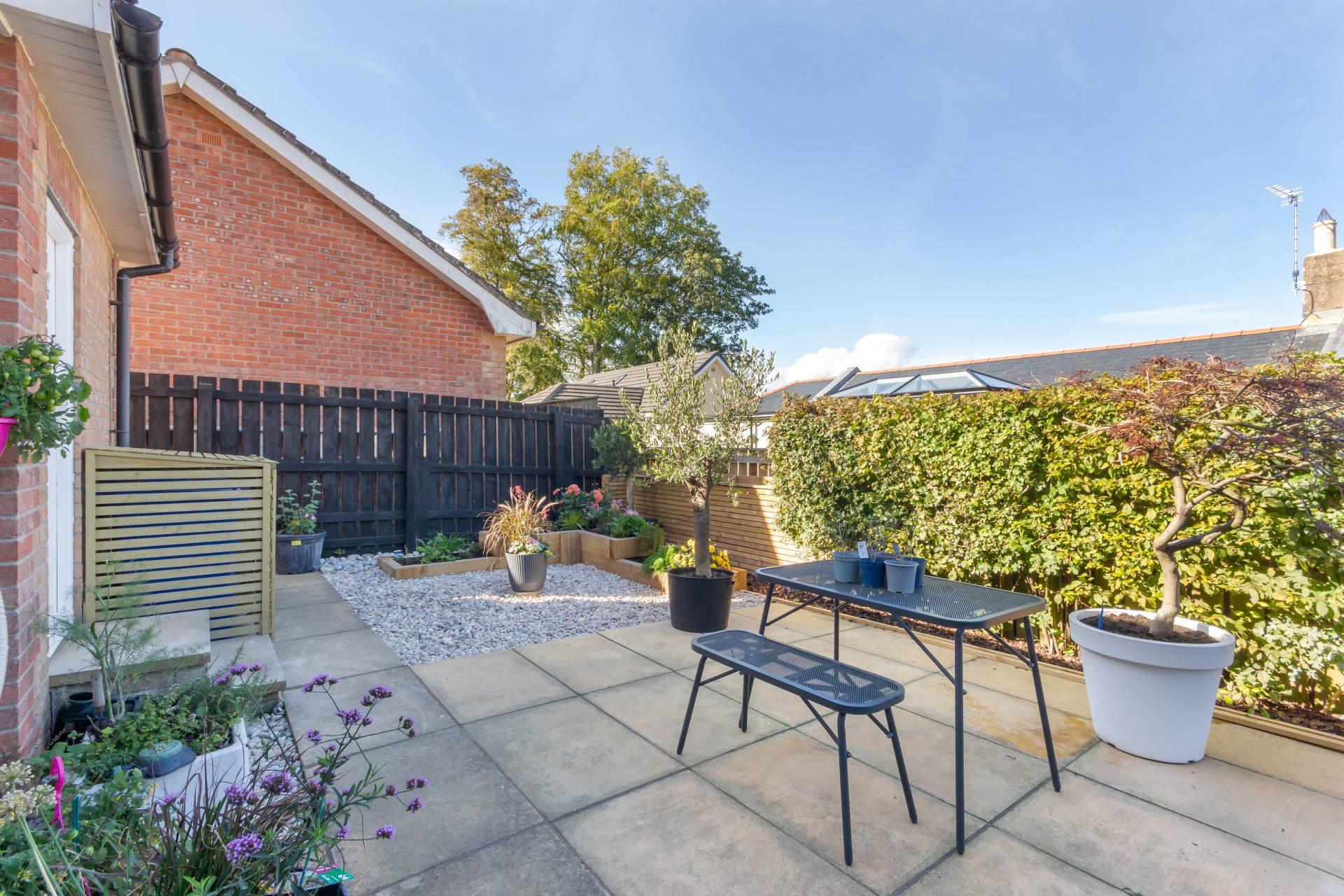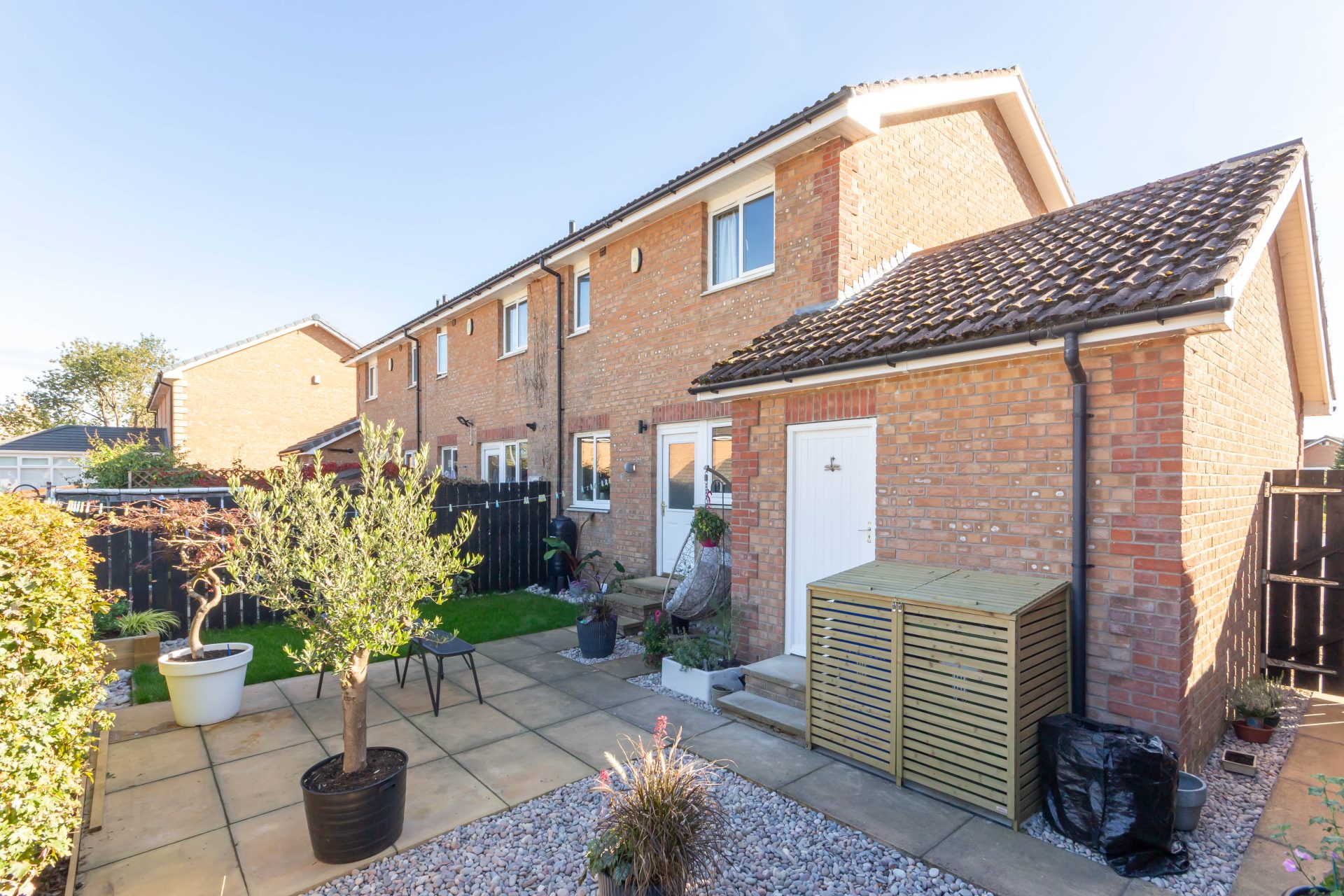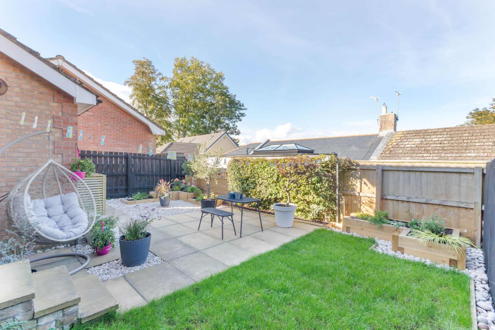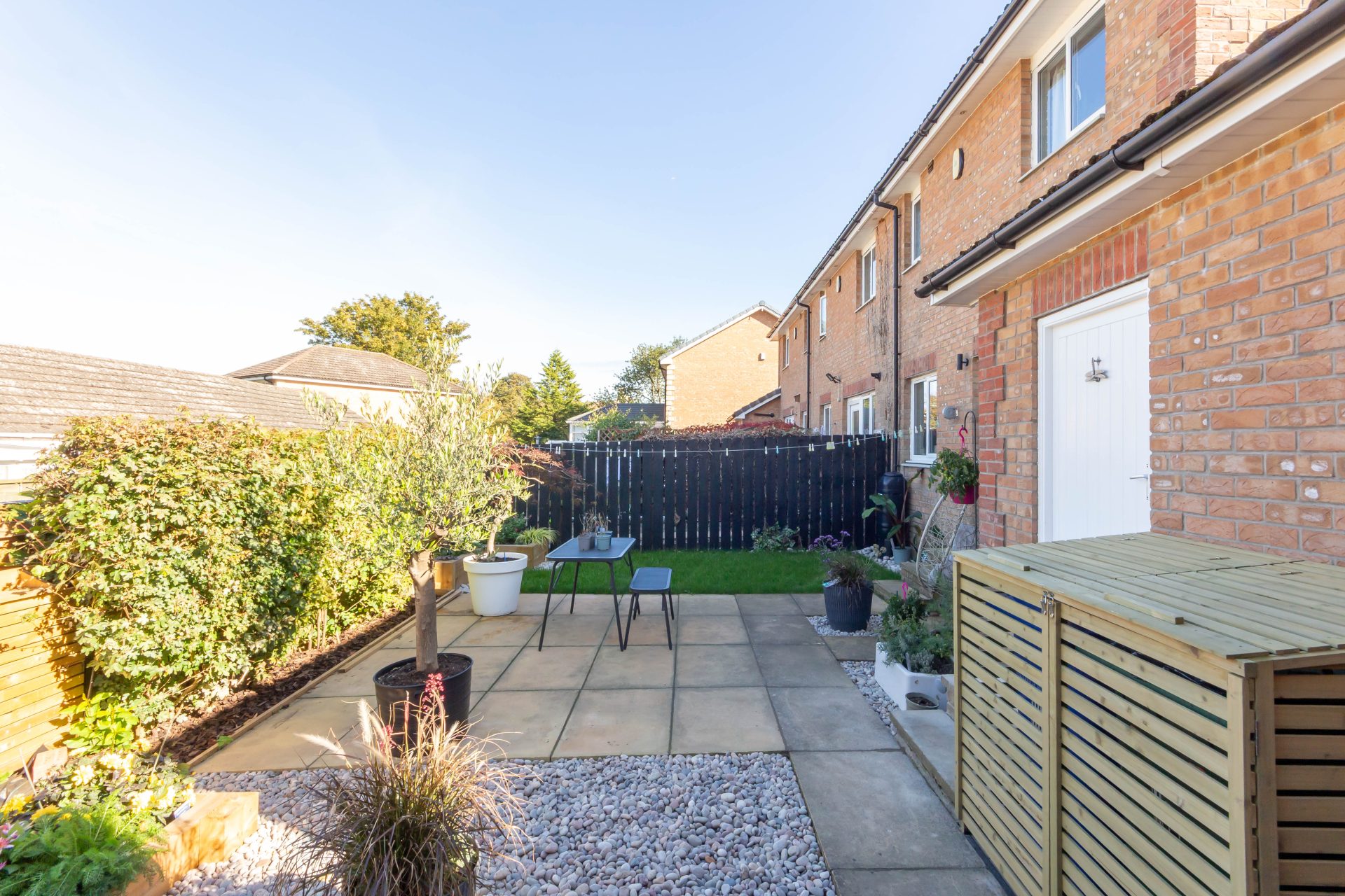 Externally – Lawned front garden | Block paved driveway for one car | Single attached garage with up and over door, and door giving access to rear garden – power & lighting, with washing machine and space for tumble dryer – and a a secure side gate to the garden | Fabulous landscaped rear garden designed for easy maintenance – lawn, paved patio terrace, gravel beds, and raised planted beds – timber bin store and a fence to the boundary giving good privacy.
