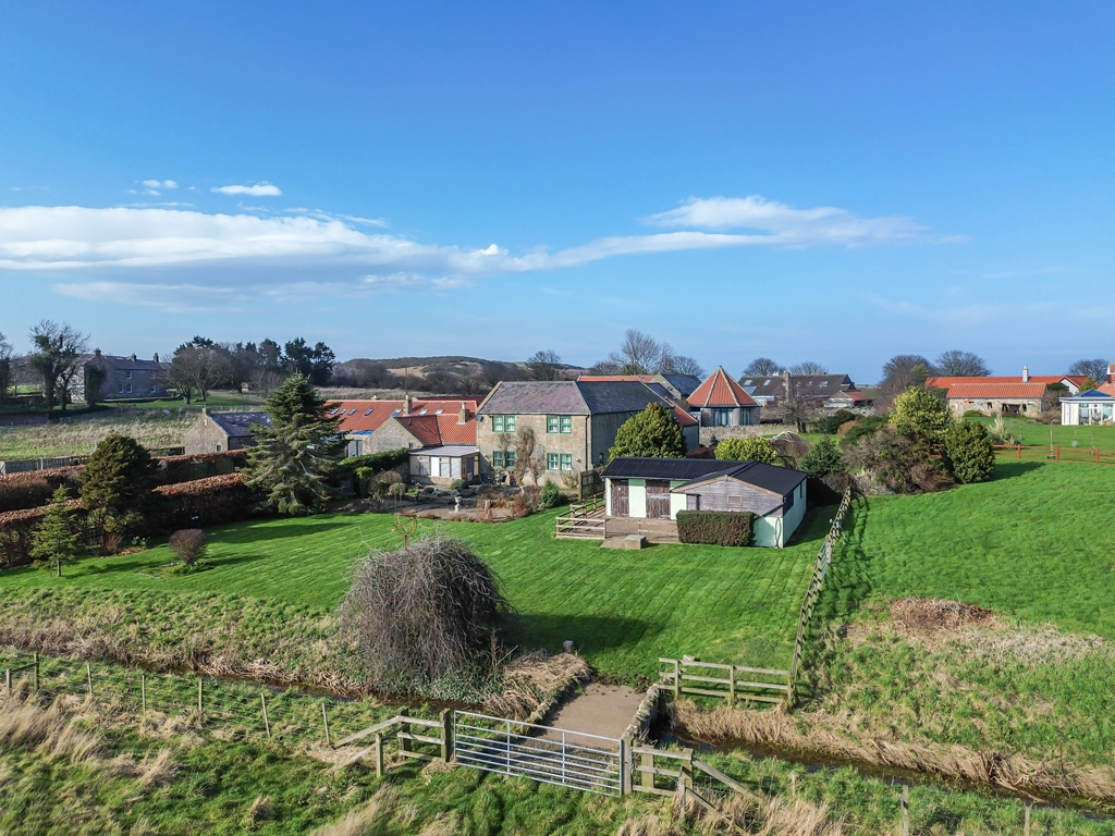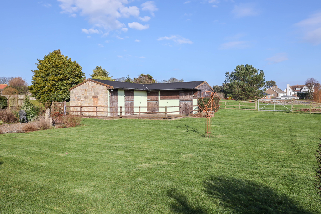 EQUESTRIAN PROPERTY IN BAMBURGH VILLAGE – Fabulous five bedroom, stone built house in the much sought after Friary Farm in Bamburgh, ideal for equestrian use with around 4 acres in total comprising; a formal south facing garden, smaller paddock, 3 acre field and stable block. Scope for further development with lapsed (2006) Planning Permission in place REF: N/04/B/0926 for a detached two storey dwelling on the stable block site with a detached double garage. NO UPWARD CHAIN