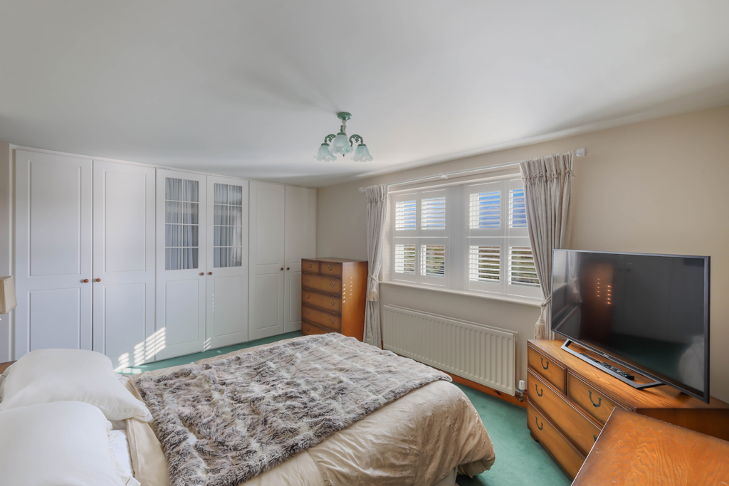 First floor – First floor landing with a large built in linen cupboard | Master bedroom with views over the gardens, plantation shutters and fitted wardrobes to one wall | Ensuite with bath, separate main corner shower, WC and wash hand basin in a vanity cabinet | Guest double bedroom, positioned over the garage, with heritage windows to the roof, and built in wardrobes to each side of the entrance | Ensuite with walk in electric shower, WC and wash hand basin | Double bedroom three with views over the garden, plantation shutters and a built in airing cupboard housing the water tank | Two further smaller double bedrooms | Shower room with mains corner shower, WC and wash hand basin