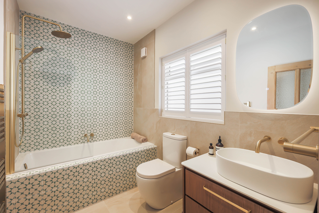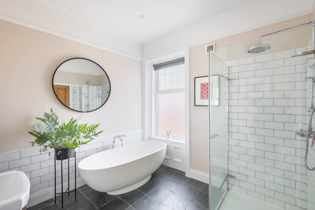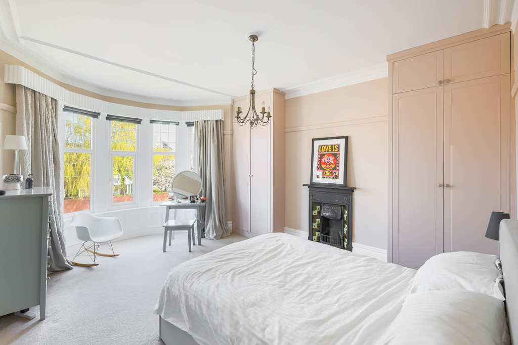 The staircase then leads up to the first floor landing and onto two double bedrooms | The principal bedroom is positioned to the front and enjoys a large double room with fitted alcove wardrobes, bay window and underfloor heating | Well presented ensuite bathroom with four piece suite, again with underfloor heating | Bedroom two is a further comfortable double room | Stunning refitted family bathroom with three piece suite.