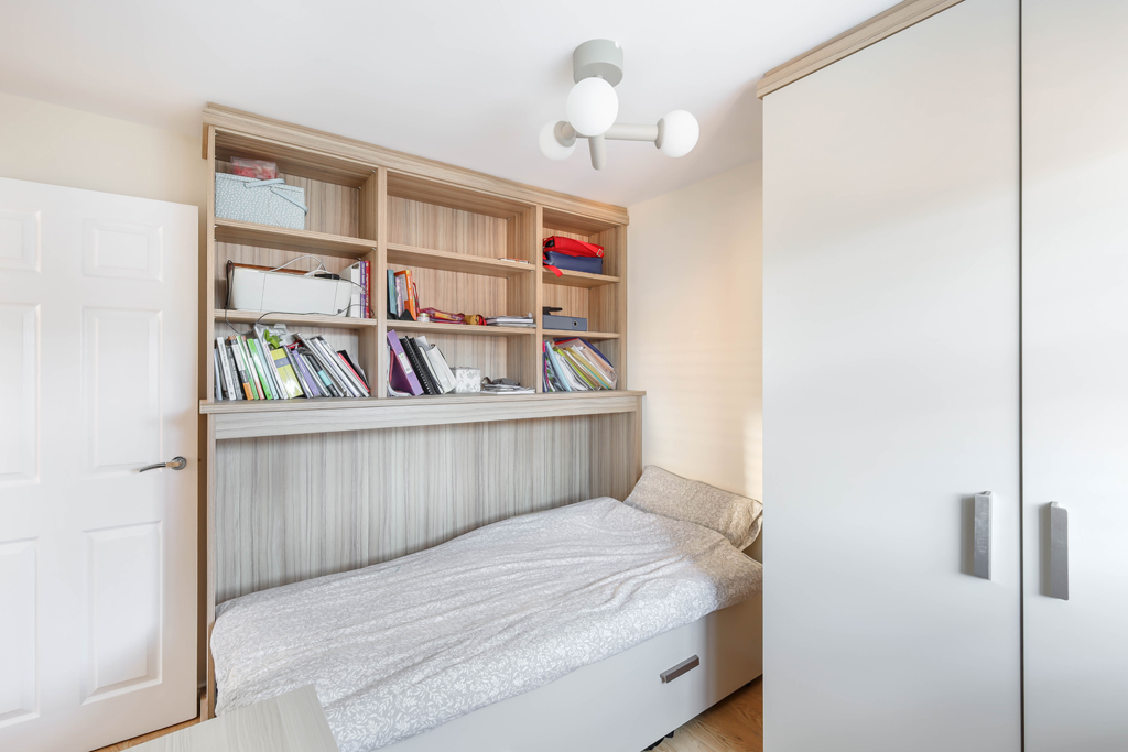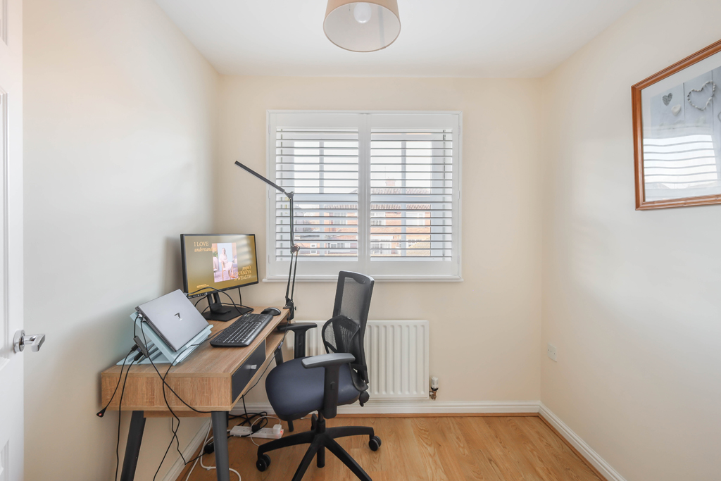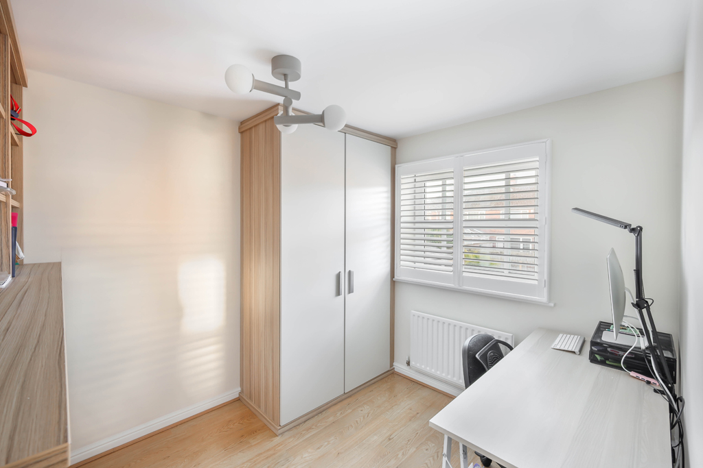 The staircase then leads up to the first floor landing and onto three bedrooms | The principal bedroom enjoys a good size double room with fitted wardrobes and ensuite shower room/wc | Bedroom two offers a smaller double room with bespoke fitted wardrobes including a pull out double bed | Bed three is a smaller single or study | Family bathroom with three piece suite.
