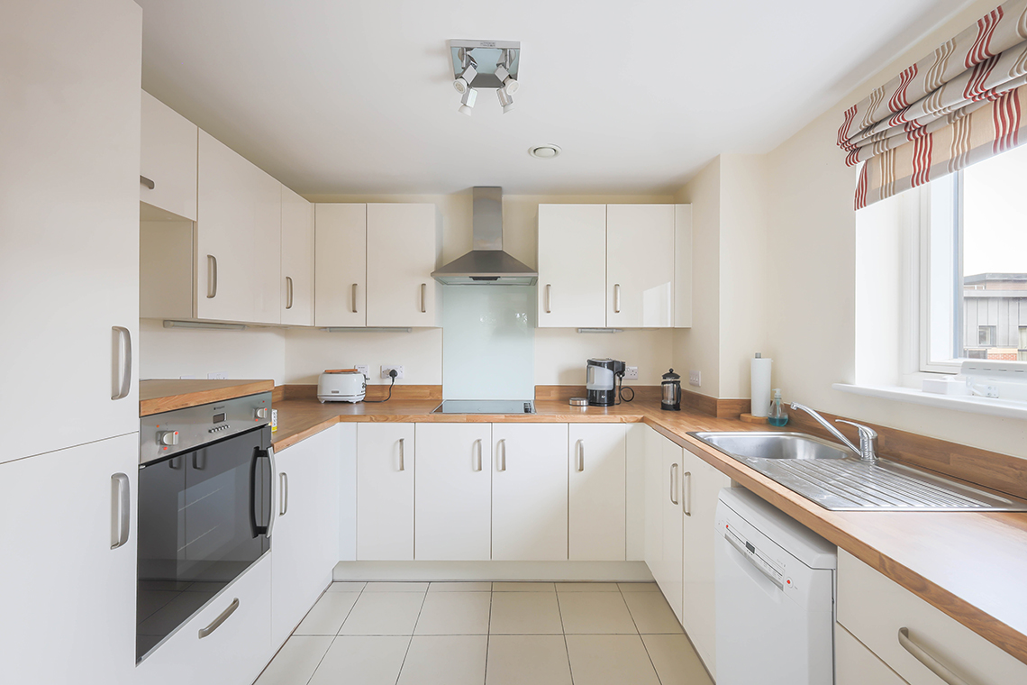 The internal accommodation comprises: Communal entrance with a security entry phone system and lift and stair access to all floors | Private entrance door at the second floor level leading into the hallway, with a large walk in storage cupboard | Lovely lounge area offering French doors opening onto a private wrap around corner balcony overlooking the surrounding greenery and access to the kitchen | Modern fitted kitchen with integrated appliances, which include electric hob with extractor hood, electric oven, fridge/freezer, recently installed dishwasher and window overlooking the communal gardens | Generous bedroom which has built in wardrobes | Main wet room including wash basin set into the vanity unit with storage.