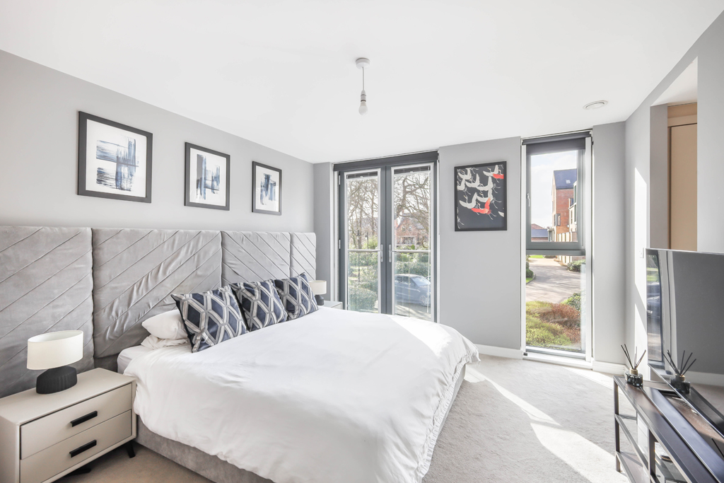 The hallway then gives access to two double bedrooms | Bedroom one is a beautiful suite with fitted wardrobes, Juliette balcony and access to a stylish ensuite shower room with WC | Bedroom two is another comfortable double room again with fitted wardrobes | Contemporary bathroom with three piece suite.