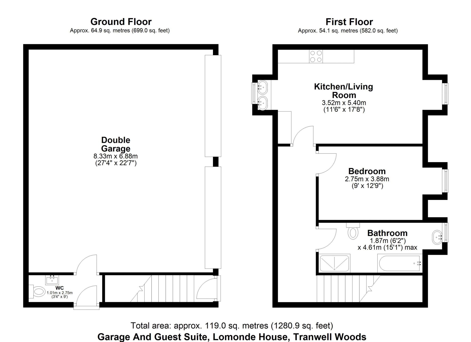 Finally, the property further benefits from a triple car garage which features a one bedroom annex above including a kitchen/living room and a bathroom WC.