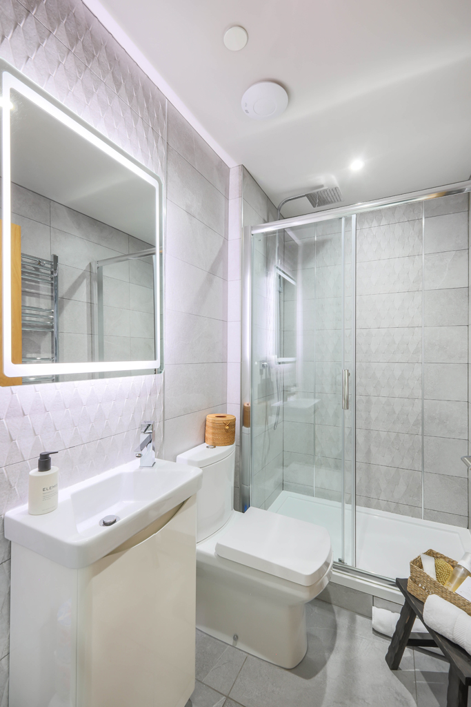 The apartment boasts three double bedrooms suites | The principal suite sits to the easterly elevation and enjoys a large double room with dual walk in wardrobes | Fantastic principal ensuite bathroom with contemporary four piece suite | Bedroom two is a further generous double room with walk in wardrobe and equally as impressive ensuite shower room/WC | Bedroom three, a comfortable double room with four piece ensuite | Guest shower room/WC.