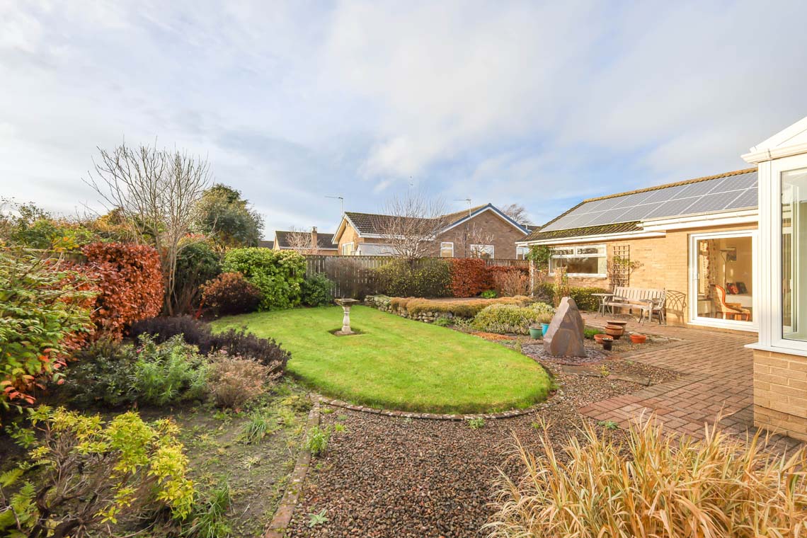 facing landscaped rear garden – the bungalow is ideally placed to the head of a quiet cul de sac in Warkworth, with easy access to the historic village and local amenities, Warkworth Castle and River Coquet. No Upward Chain