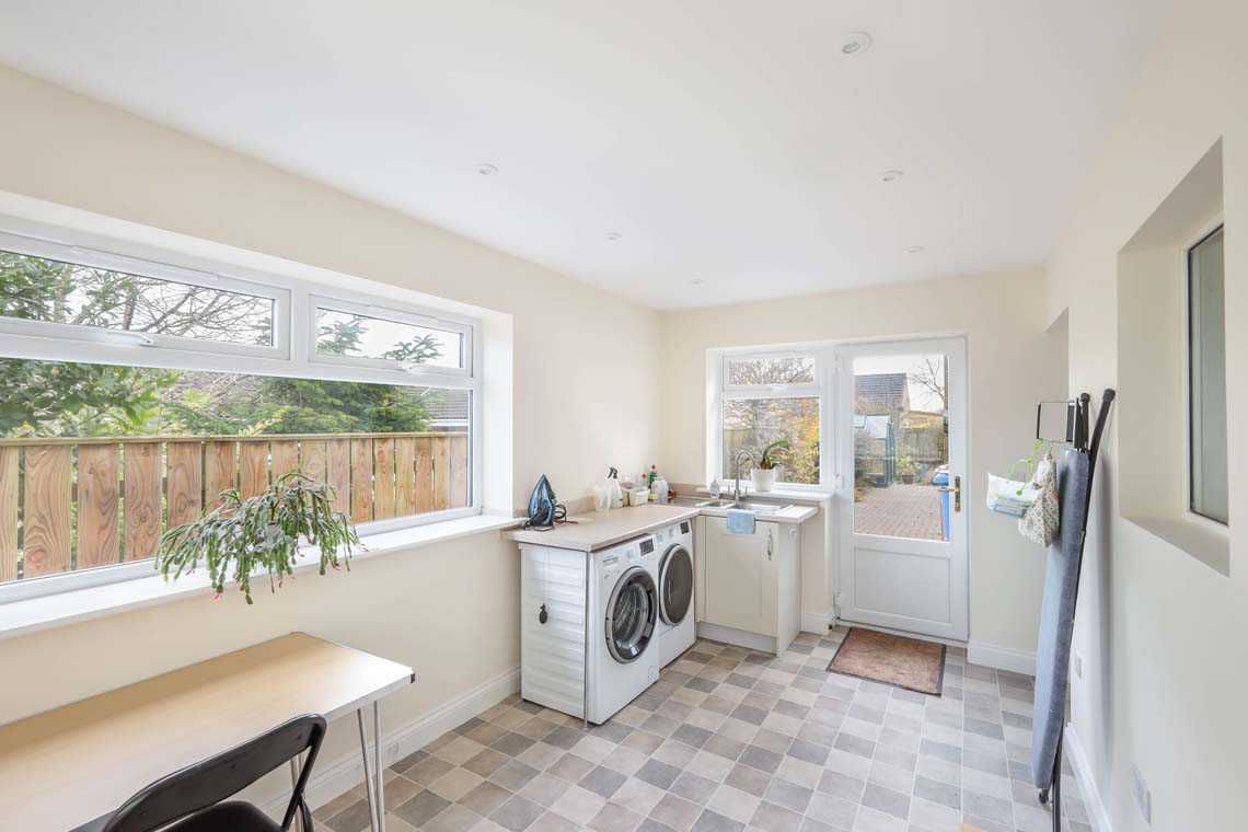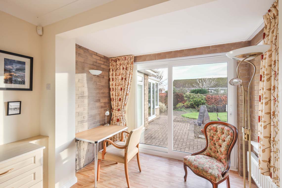 to the sitting room, the utility room added to the side of the garage, a versatile space with its own separate entrance used as a large utility/boot room and Art Studio and finally the extension of bedroom two, with patio doors opening to the garden.
