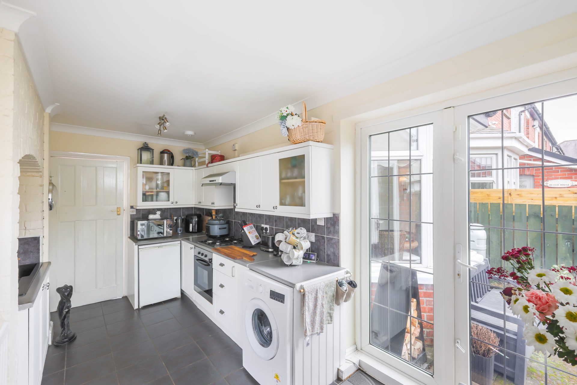and bay window | Light and airy kitchen with original feature chimney breast, offering