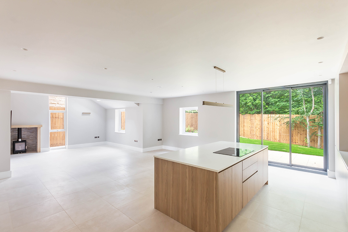 To the ground floor, the double height entrance hallway provides the perfect entrance and is equipped with cloakroom storage and wc, where there is also access to a cosy TV lounge/snug room to the front of the house. To the rear of the house is a breath taking open plan space, complete with luxury Porcelanosa fully fitted kitchen. This room is the heart of the home, with excellent living and dining spaces, with doors leading to the private west facing garden. There is also a pantry and utility room/laundry, as well as an integral garage which provides parking for one car, with additional storage area.