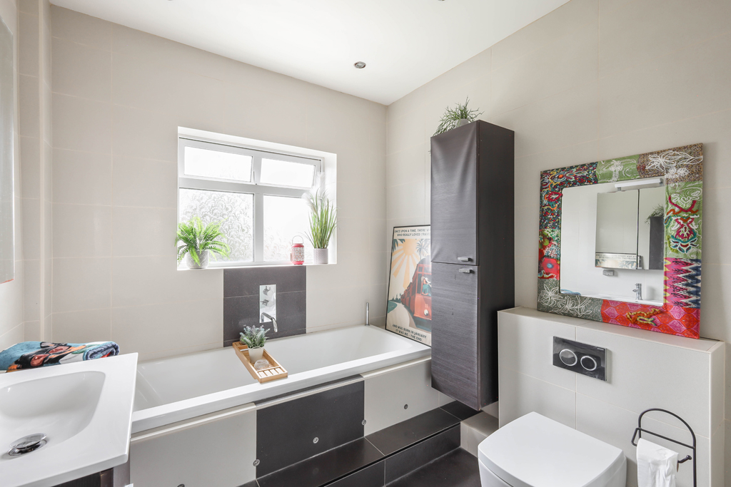 The stairs to the first floor give access to three bedrooms | The principal bedroom enjoys a large double room to the front with bay window | Bedroom two is a further generous double room | Bedroom three offers a single room with bay | Impressive family bathroom with contemporary four piece suite.