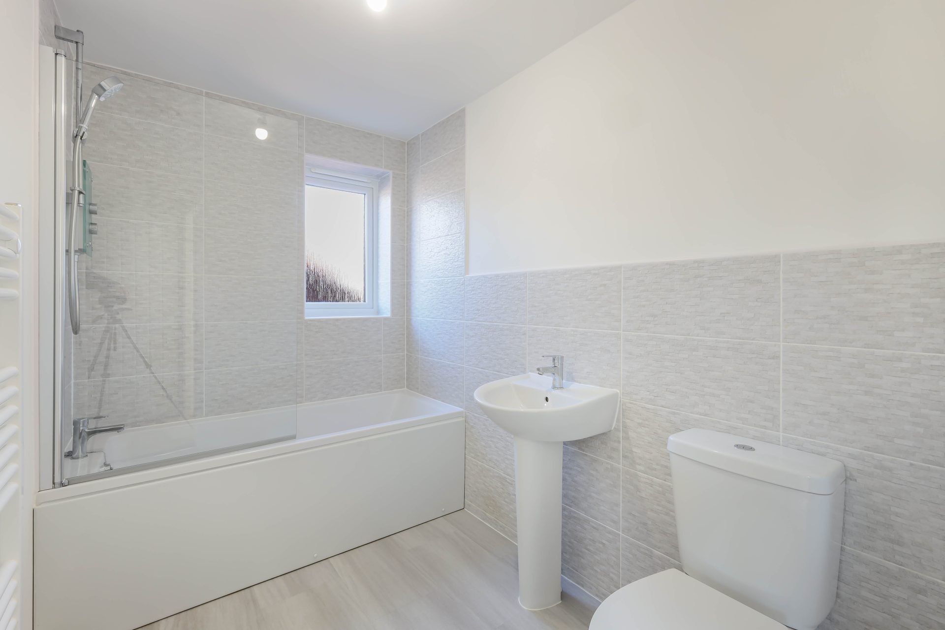 upgraded full tiling and ladder radiator to the family bathroom, and upgraded tiles to