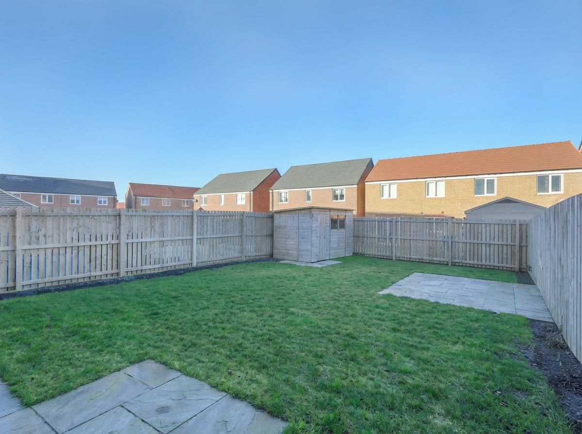 Externally – The house has a double width driveway for two cars | Gate to the side giving access to the rear garden | Lawned garden with a large timber shed, paved patio area, outside water tap and timber fence to the boundary.