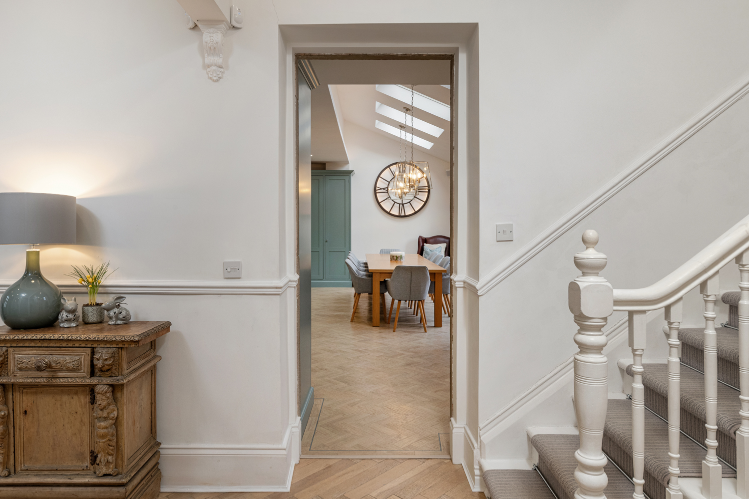These extensive works include a large double storey extension, full internal fit out, construction of a new detached garage, new double glazed wooden sash windows, a complete new roof to the property and relandscaping of the garden.