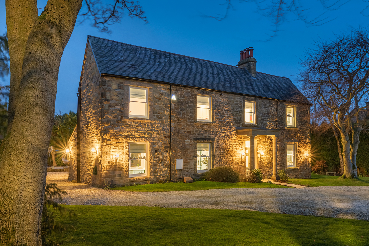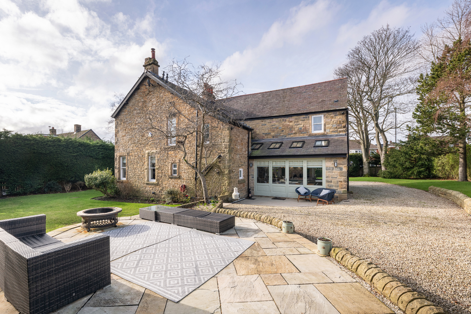 Externally, Tancred House boasts an attractive wide frontage, with electronic gates leading to a sweeping gravel driveway offering secure parking | Detached double garage with electric roller door | The formal gardens wrap around the entirety of the property, and are laid predominantly to lawn, with mature and well stocked borders offering a great degree of privacy | Raised paved patio terrace.