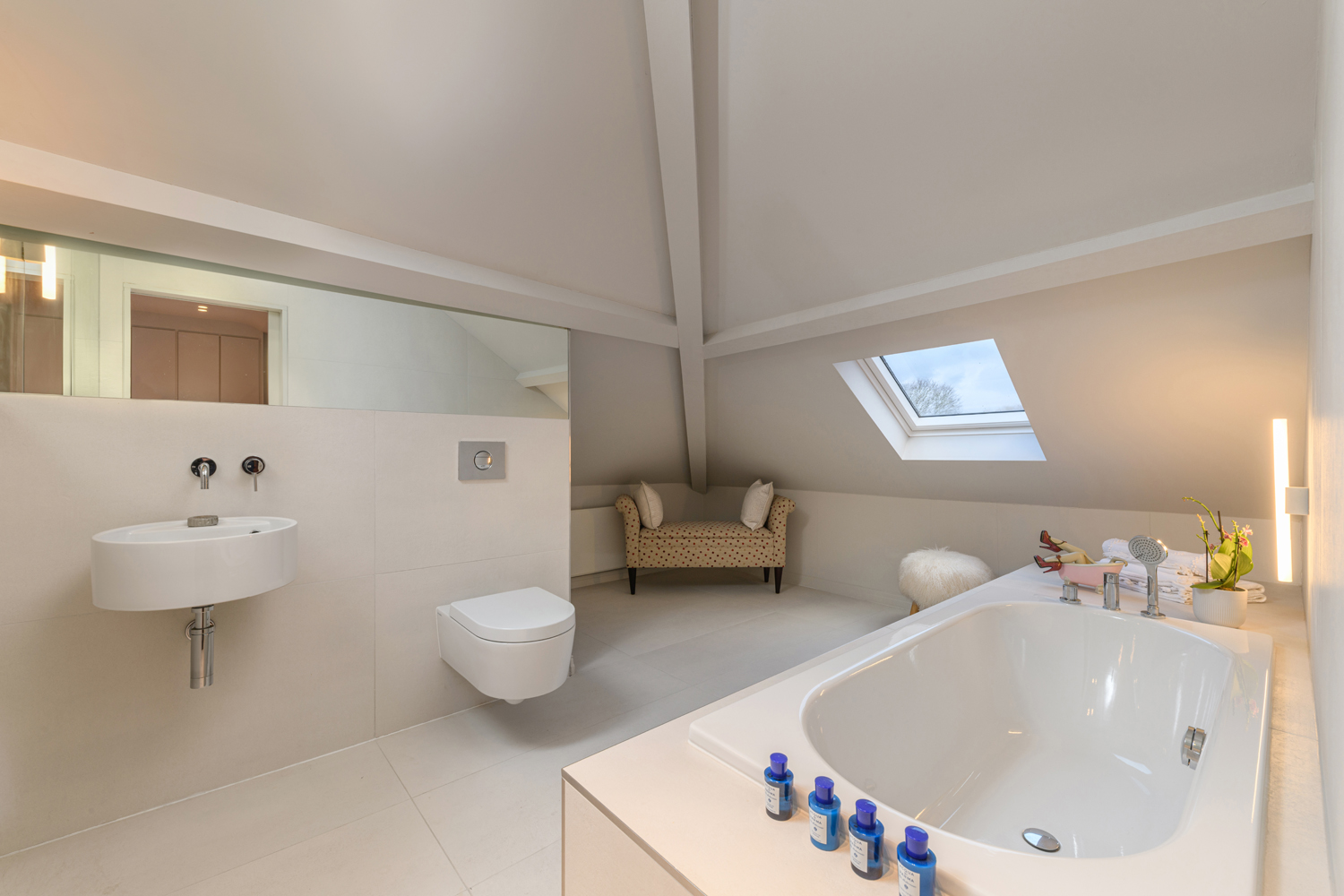The principal staircase leads to the first and second floors, where there are six bedrooms, two with fitted wardrobes, and five bathrooms. Each bathroom is fitted with Italian Flaminia sanitaryware and elegant tiling, with the top floor bathrooms having imported Italian tiles. The principal bedroom suite benefits from a private dressing room with Rimadesio fitted wardrobes and drawers, as well as luxuriously appointed ensuite facilities with Carrara marble and bespoke wash hand basin unit. All of the bathrooms benefit from underfloor heating.