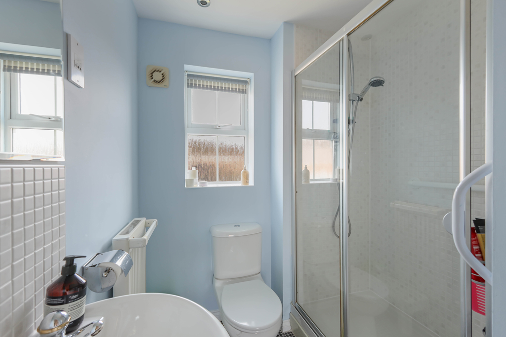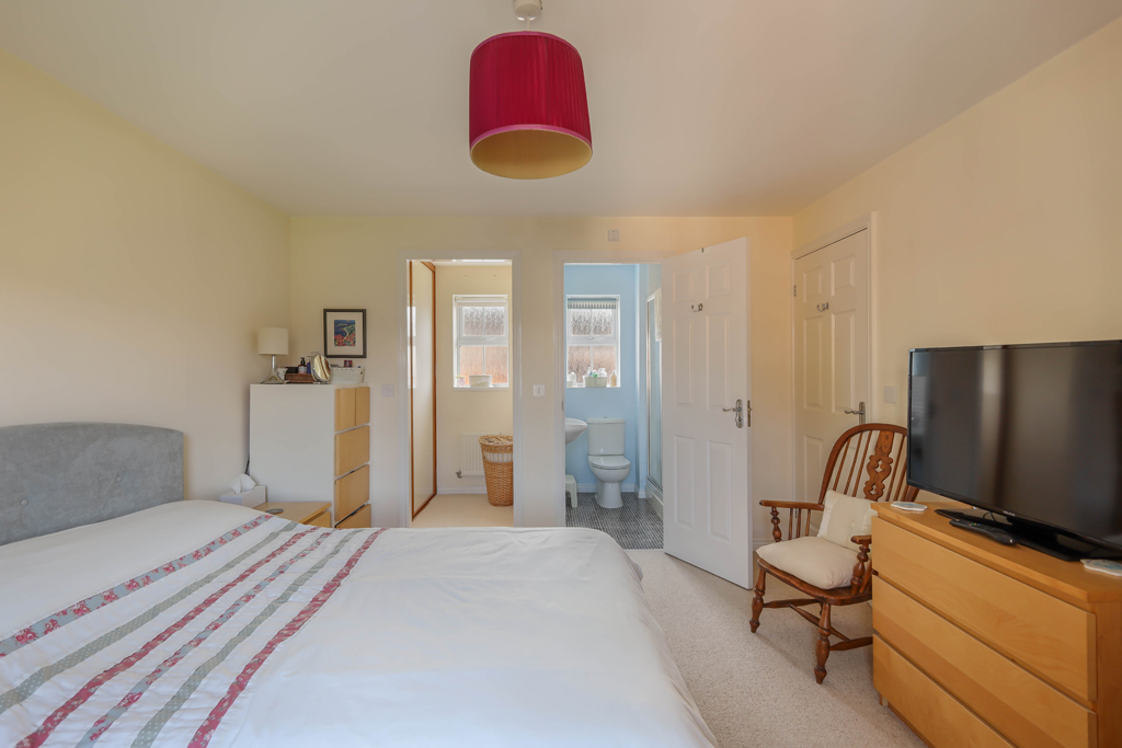 First floor – First floor landing with a built in airing cupboard and access to the loft | Master bedroom with dual aspect windows | Dressing room | Ensuite shower with double length mains shower, WC and wash hand basin | Two further double bedrooms | Single bedroom four/study | Family bathroom with a bath, WC and wash hand basin.