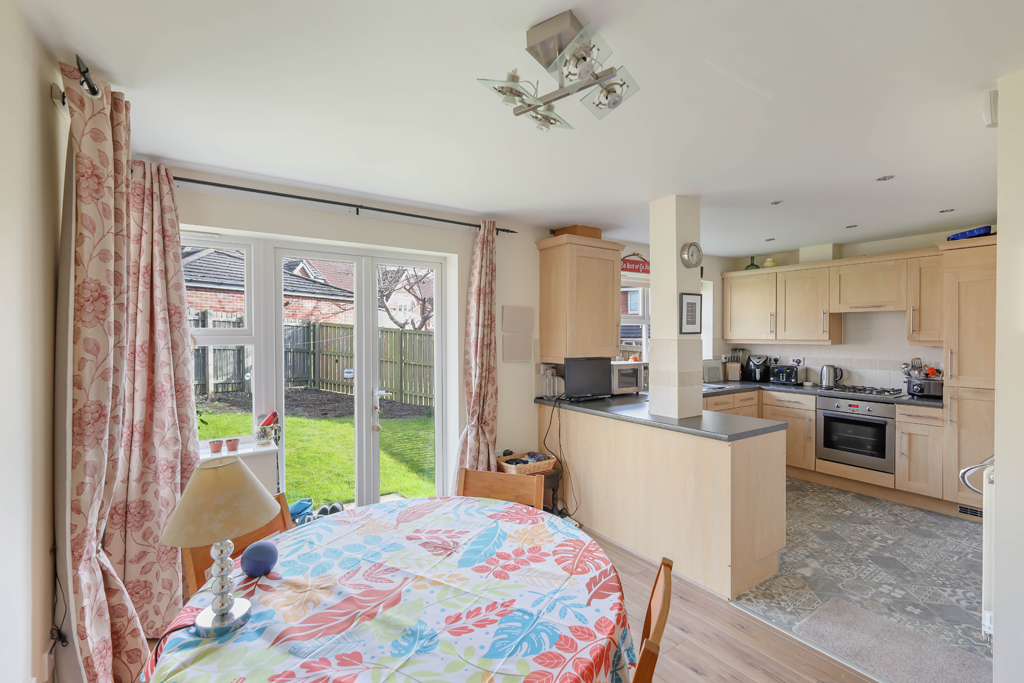 An immaculately presented and well maintained four bedroom semi-detached house, located in a lovely corner position overlooking the green in Tyelaw Meadows – the excellent family home benefits from an attractive east facing rear garden, a single garage and driveway parking to the rear and uPVC double glazed windows throughout.