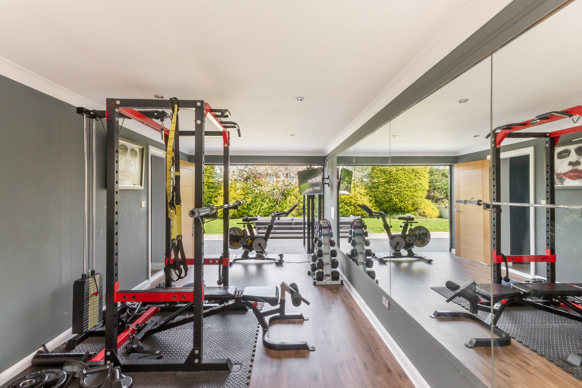 Boasting in excess of 3720 sq.ft, the internal accommodation comprises: Spacious entrance hallway | Full depth living room with impressive media wall, dual aspect views over the front and rear and feature fireplace | Study situated to the front of the property | Ground floor WC | To the rear of the ground floor is an outstanding open plan kitchen, dining & living room with glazed bifold doors onto the rear gardens. The contemporary kitchen is extremely well equipped with a range of integrated appliances throughout, modern cabinetry & worktops and large central island. The living space offers a further media wall with bespoke fitted storage | Separate utility room with integral access into the double garage | Home gymnasium/further reception room.