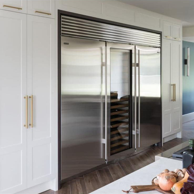 The hallway then connects through to a stunning open plan kitchen, dining & living room which boasts a highly impressive Mowlem & Co kitchen, offering modern cabinetry and worktops, large central island, integrated appliances throughout including Sub Zero fridges, ‘Wolf’ cooker and Quooker hot tap. The living space has a feature bespoke media wall and offers newly installed floor to ceiling glazed doors leading out onto the rear patio | Secondary kitchen/utility room | Plant room | Second guest WC.