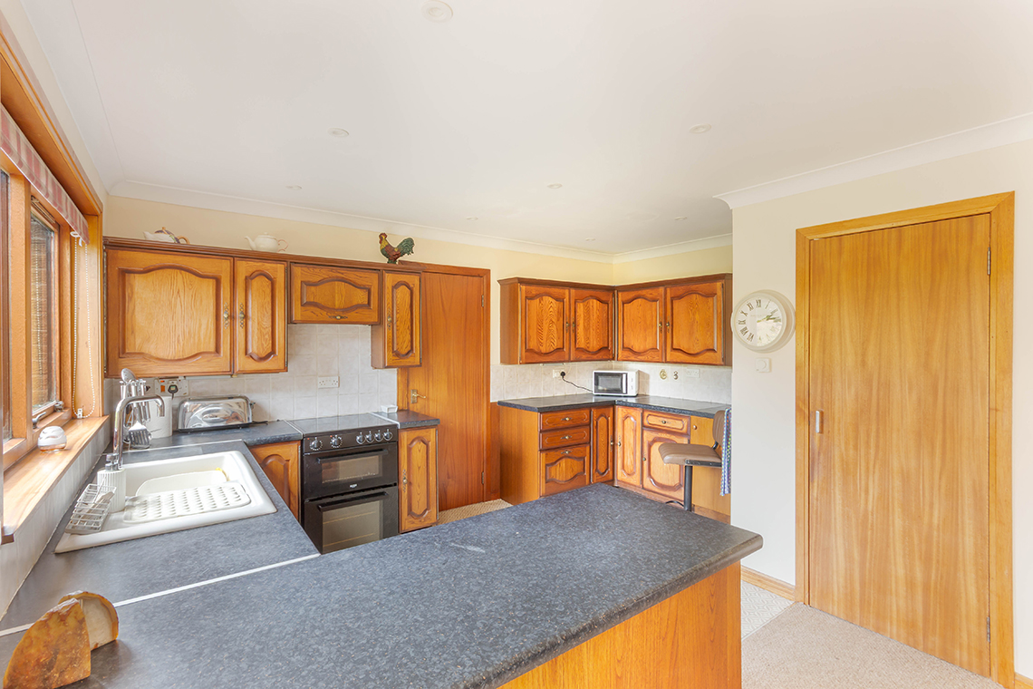 The bungalow, of timber frame construction with a stone faced front and brick to the rear, benefits from timber double glazed windows, oil central heating with a new